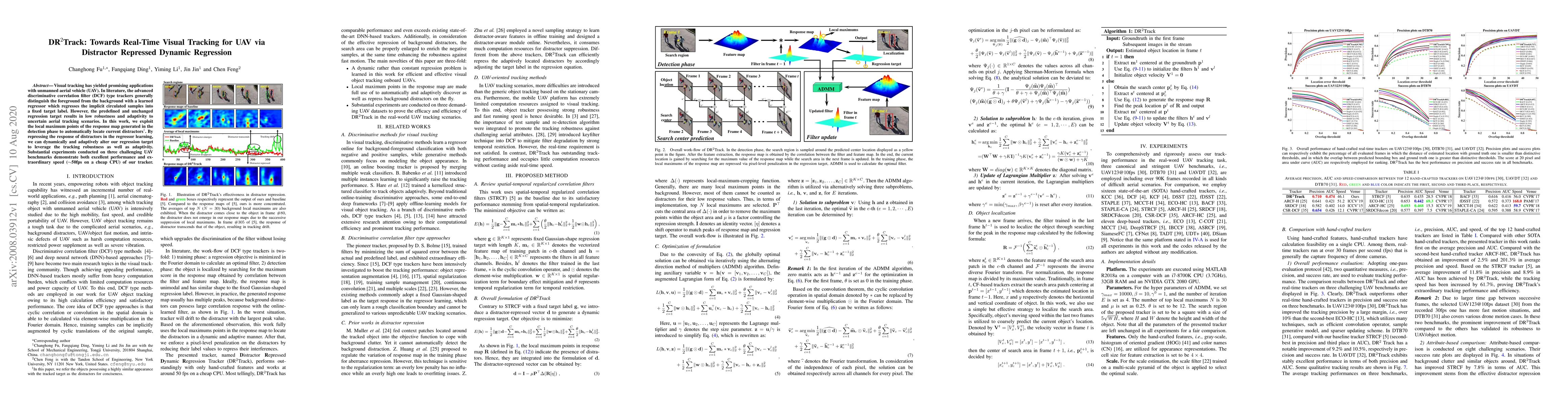 A new visual tracking system called DR^2Track improves tracking accuracy and speed for unmanned aerial vehicles (UAVs) by dynamically adjusting its target based on detected distractors.
