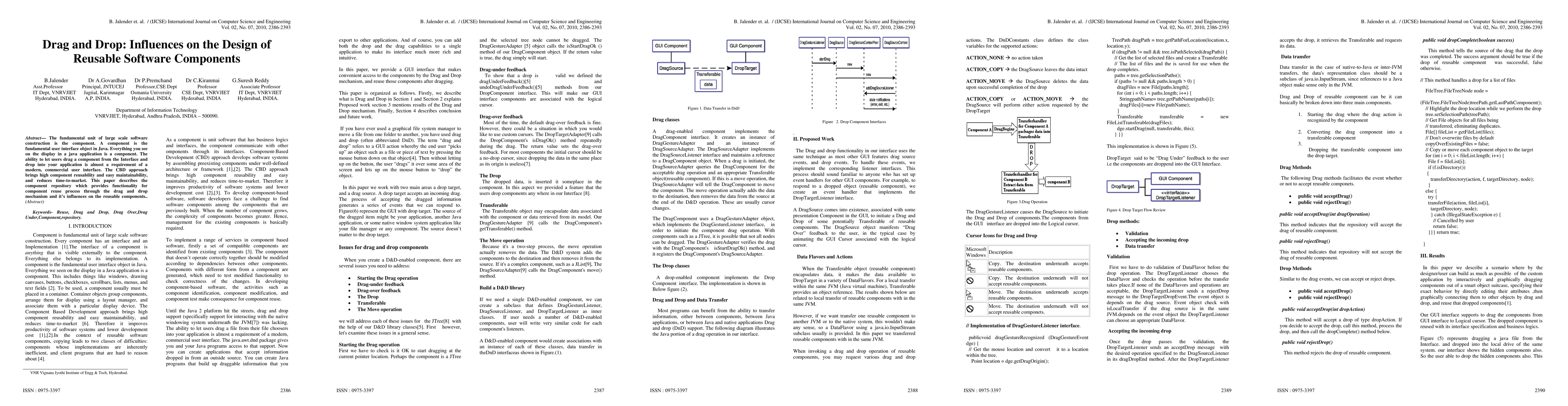 This paper explores how the drag-and-drop mechanism enhances the design and reusability of software components in Java, emphasizing the benefits of component-based development (CBD) in improving maintainability and reducing time-to-market. It investigates the influences of this approach on the lifecycle and functionality of reusable components.