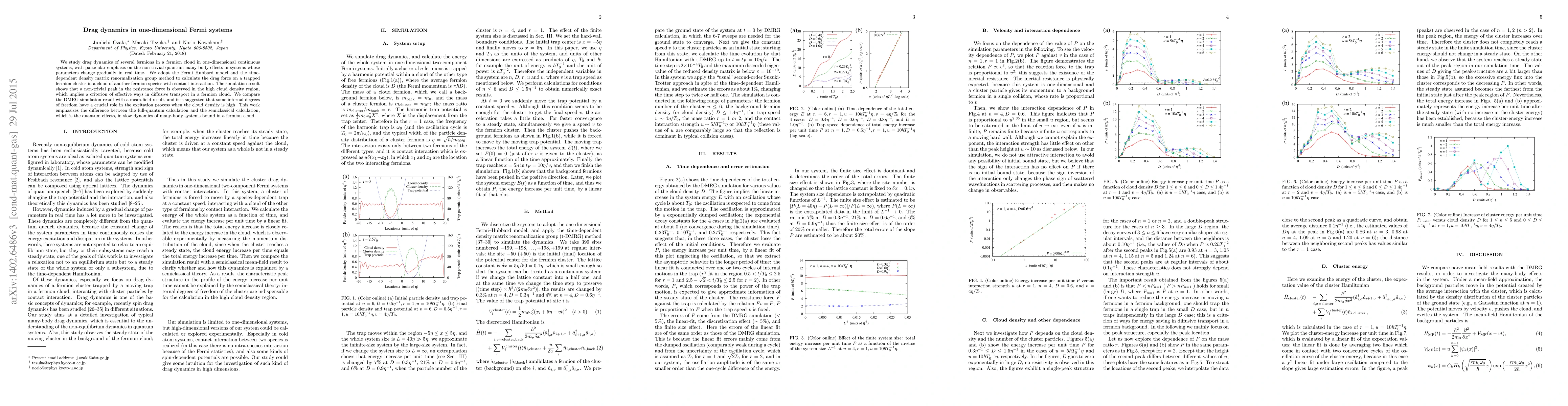 We study drag dynamics of several fermions in a fermion cloud in one-dimensional continuous systems, with particular emphasis on the non-trivial quantum many-body effects in systems whose parameters change gradually in real time. We adopt the Fermi--Hubbard model and the time-dependent density matrix renormalization group method to calculate the drag force on a trapped fermion cluster in a cloud of another fermion species with contact interaction. The simulation result shows that a non-trivial peak in the resistance force is observed in the high cloud density region, which implies a criterion of effective ways in diffusive transport in a fermion cloud. We compare the DMRG simulation result with a mean-field result, and it is suggested that some internal degrees of freedom have a crucial role in the excitation process when the cloud density is high. This work emphasizes the difference between the full-quantum calculation and the semiclassical calculation, which is the quantum effects, in slow dynamics of many-body systems bound in a fermion cloud.