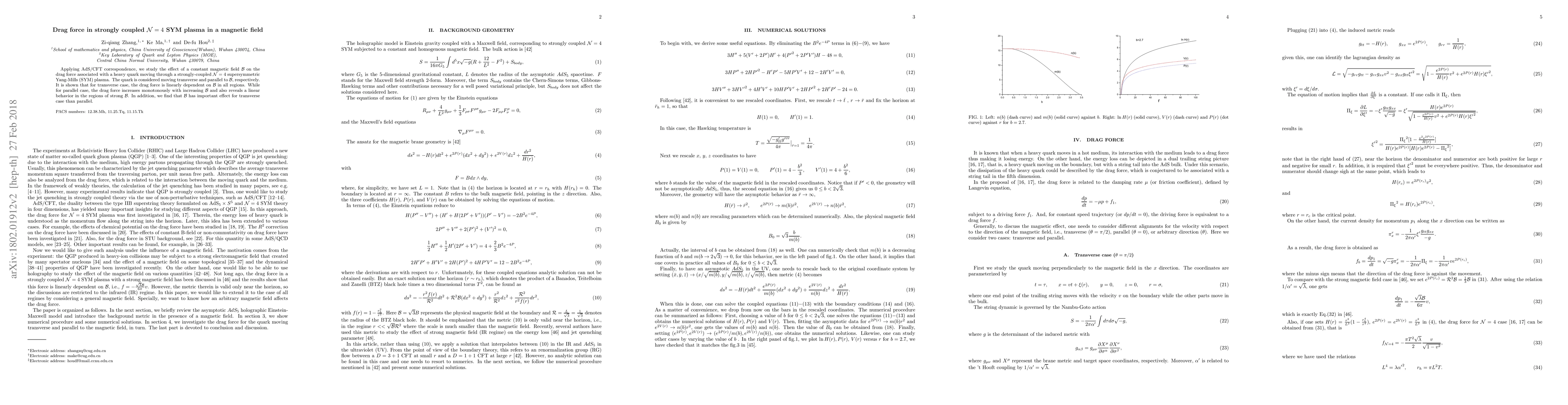 This study uses the AdS/CFT correspondence to analyze the drag force on a heavy quark moving through a strongly coupled $\mathcal{N}=4$ SYM plasma under a constant magnetic field $\mathcal{B}$. The drag force is linearly dependent on $\mathcal{B}$ when the quark moves transverse to $\mathcal{B}$, while it increases monotonously for motion parallel to $\mathcal{B}$, showing linear behavior in strong $\mathcal{B}$ regions.