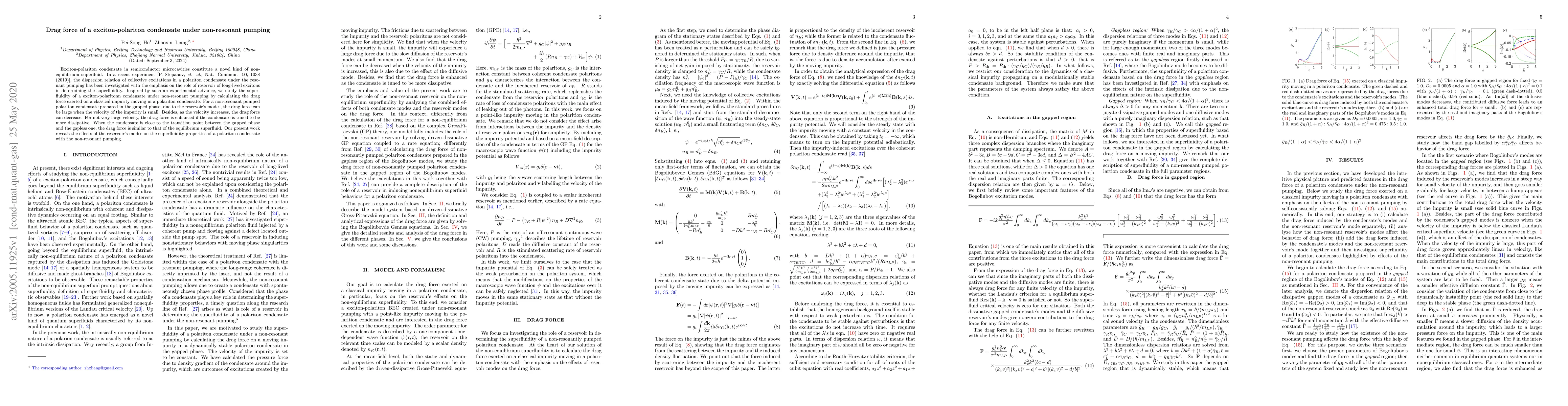 This paper investigates the drag force on a classical impurity in a non-resonantly pumped exciton-polariton condensate, revealing that the drag force is significant at low impurity velocities and diminishes with increasing velocity. The study highlights the influence of reservoir modes on superfluidity properties, showing enhanced drag force in more dissipative condensates.