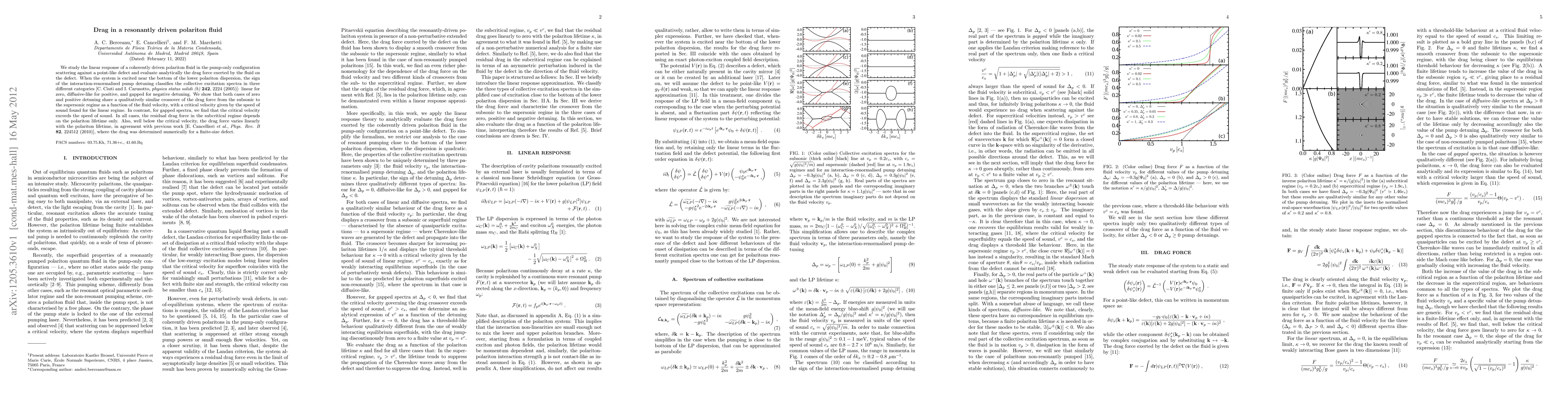 This paper investigates the drag force exerted by a coherently driven polariton fluid on a point-like defect, revealing a transition from subsonic to supersonic drag regimes as fluid velocity increases. For certain excitation conditions, the critical velocity for this transition exceeds the speed of sound, while the drag force below this critical velocity correlates linearly with the polariton lifetime.