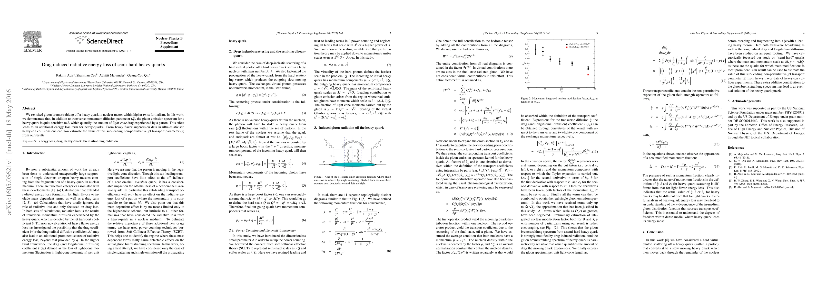 We revisited gluon bremsstrahlung off a heavy quark in nuclear matter within higher twist formalism. In this work, we demonstrate that, in addition to transverse momentum diffusion parameter ($\hat q$), the gluon emission spectrum for a heavy quark is quite sensitive to $\hat e$, which quantify the amount of light-cone drag experienced by a parton. This effect leads to an additional energy loss term for heavy-quarks. From heavy flavor suppression data in ultra-relativistic heavy-ion collisions one can now estimate the value of this sub-leading non-perturbative jet transport parameter ($\hat e$) from our results.