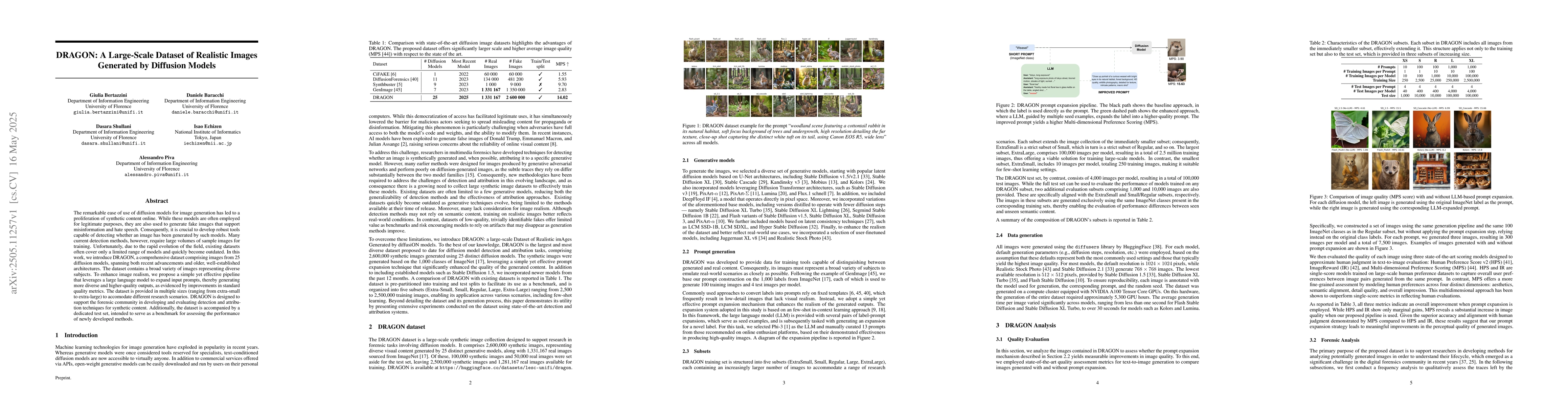 Unlike previous datasets, DRAGON covers a broader range of diffusion models, offers multiple image sizes, and employs a large language model-based pipeline to improve image realism and diversity.