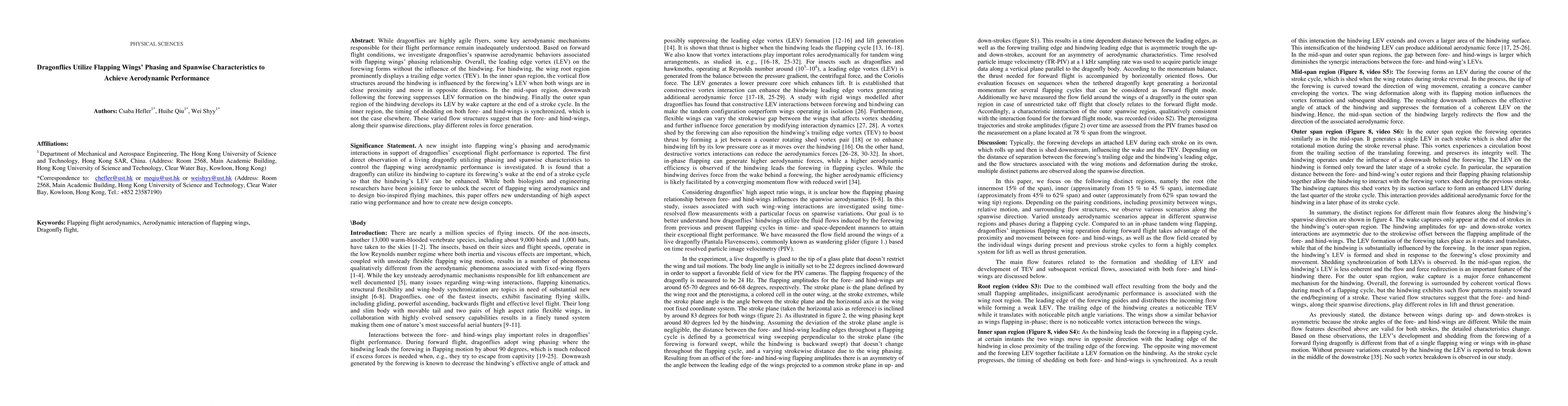 This study provides new insights into the aerodynamics of dragonfly flight and has potential implications for the development of more efficient wing designs for micro-aerial vehicles.