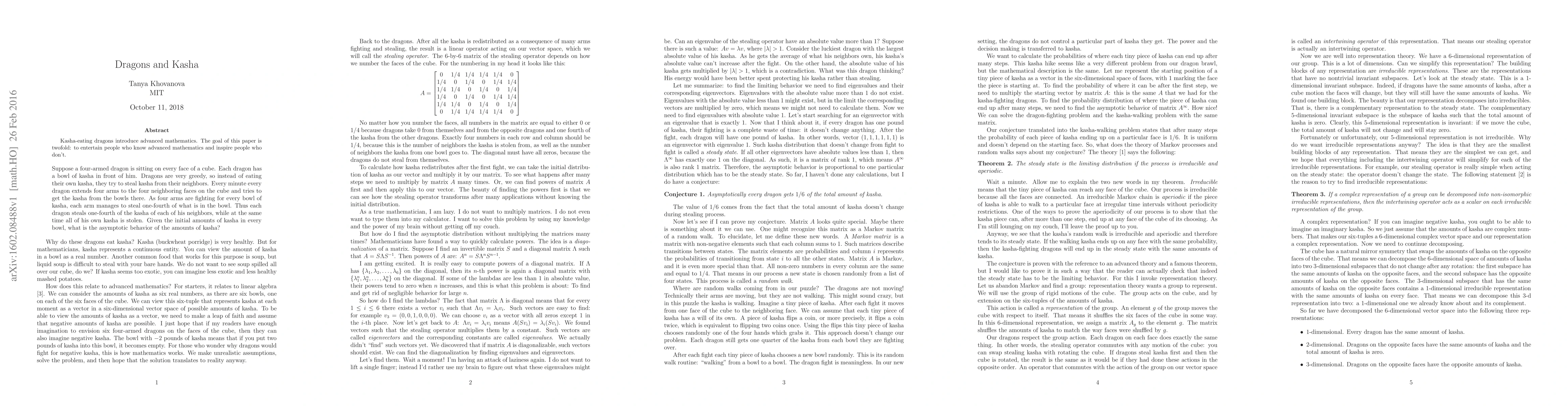 Kasha-eating dragons introduce advanced mathematics. The goal of this paper is twofold: to entertain people who know advanced mathematics and inspire people who don't.