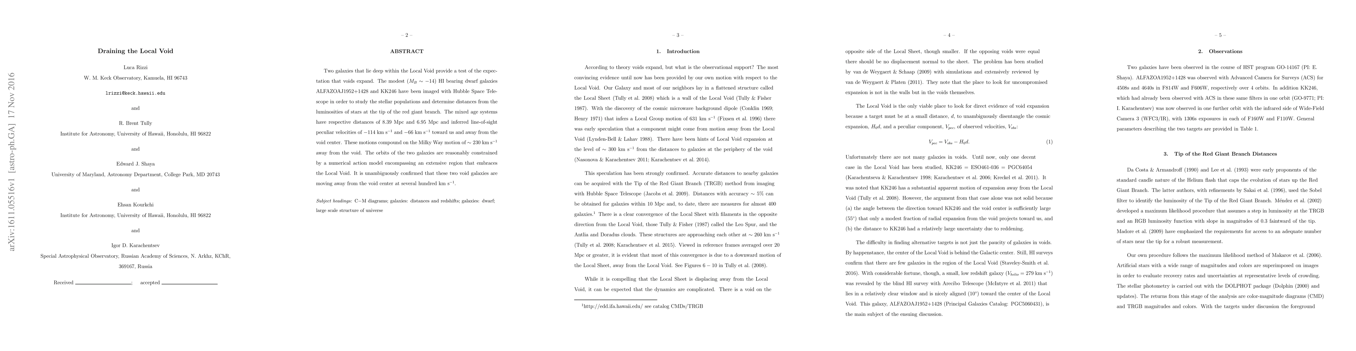 This paper investigates two dwarf galaxies within the Local Void, confirming their motion away from the void center at several hundred km/s, supporting the hypothesis that voids expand. The galaxies' distances and stellar populations were determined using Hubble Space Telescope imaging.