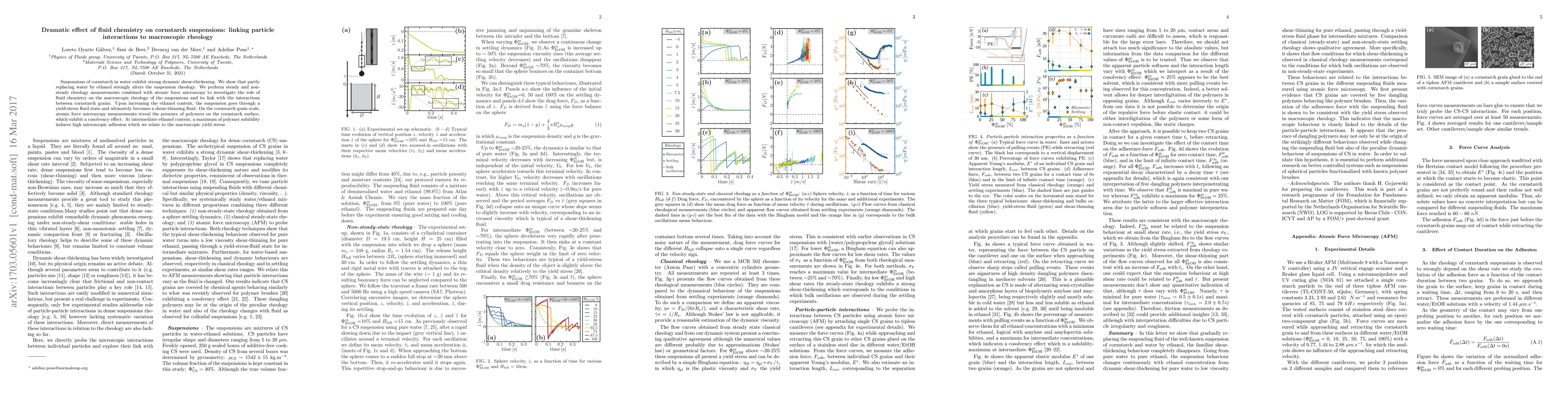 This study investigates how altering the fluid chemistry in cornstarch suspensions by replacing water with ethanol affects their macroscopic rheology. The research reveals that increased ethanol content transforms the suspension from a shear-thickening fluid to a yield-stress fluid and finally to a shear-thinning fluid, linked to changes in cornstarch grain interactions observed via atomic force microscopy.