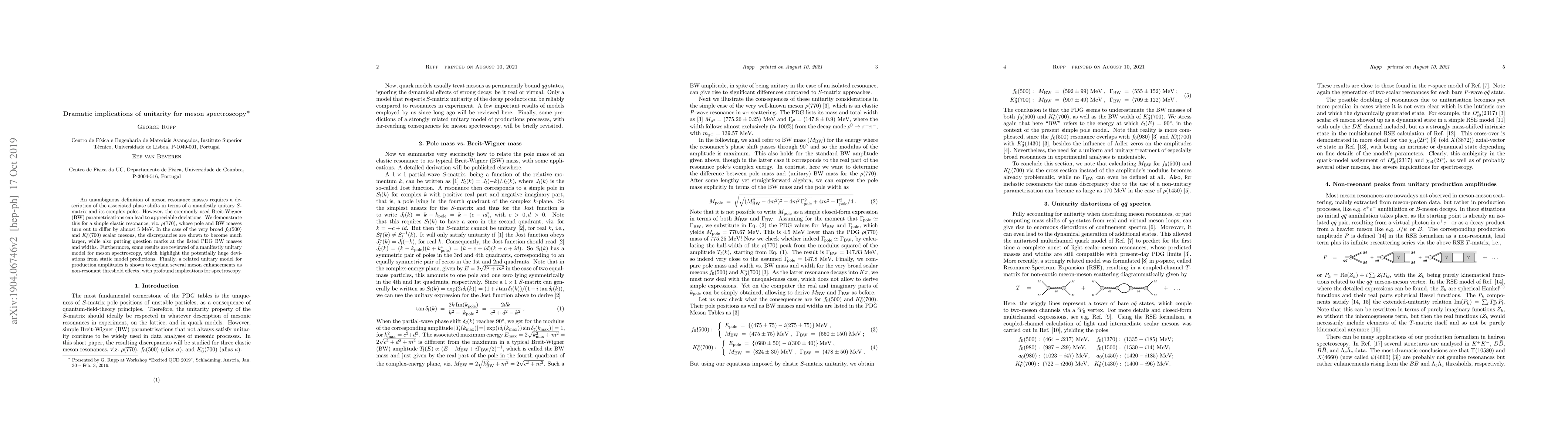 An unambiguous definition of meson resonance masses requires a description of the associated phase shifts in terms of a manifestly unitary $S$-matrix and its complex poles. However, the commonly used Breit-Wigner (BW) parametrisations can lead to appreciable deviations. We demonstrate this for a simple elastic resonance, viz. $\rho(770)$, whose pole and BW masses turn out to differ by almost 5 MeV. In the case of the very broad $f_0(500)$ and $K_0^\star(700)$ scalar mesons, the discrepancies are shown to become much larger, while also putting question marks at the listed PDG BW masses and widths. Furthermore, some results are reviewed of a manifestly unitary model for meson spectroscopy, which highlight the potentially huge deviations from static model predictions. Finally, a related unitary model for production amplitudes is shown to explain several meson enhancements as non-resonant threshold effects, with profound implications for spectroscopy.