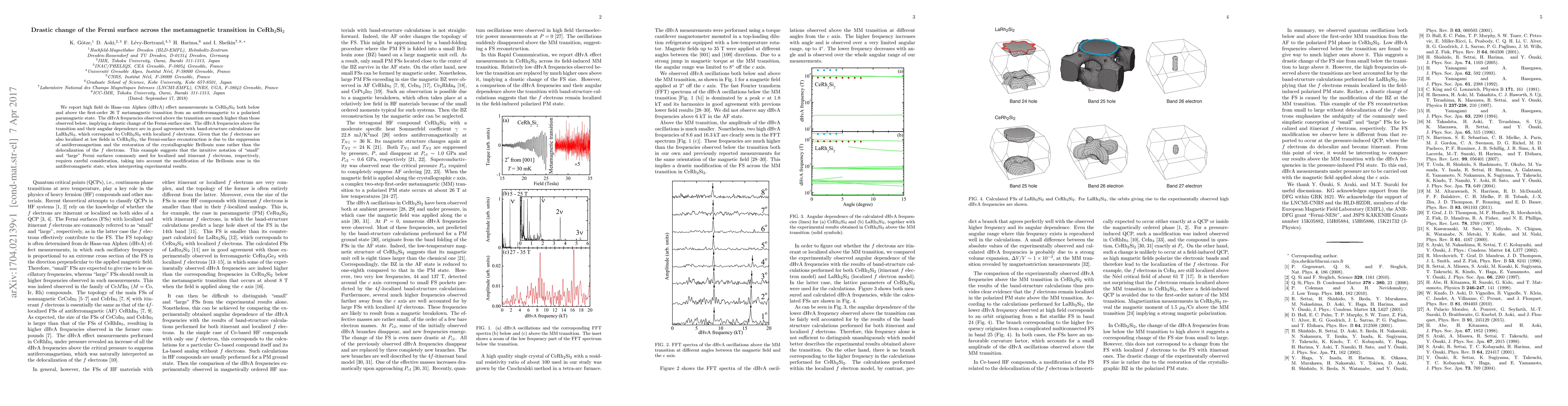 This study reveals a significant change in the Fermi surface size in CeRh$_2$Si$_2$ across its metamagnetic transition, with higher de Haas-van Alphen frequencies observed in the polarized paramagnetic state compared to the antiferromagnetic state. The transition is attributed to the suppression of antiferromagnetism and the restoration of the crystallographic Brillouin zone, rather than $f$ electron delocalization.