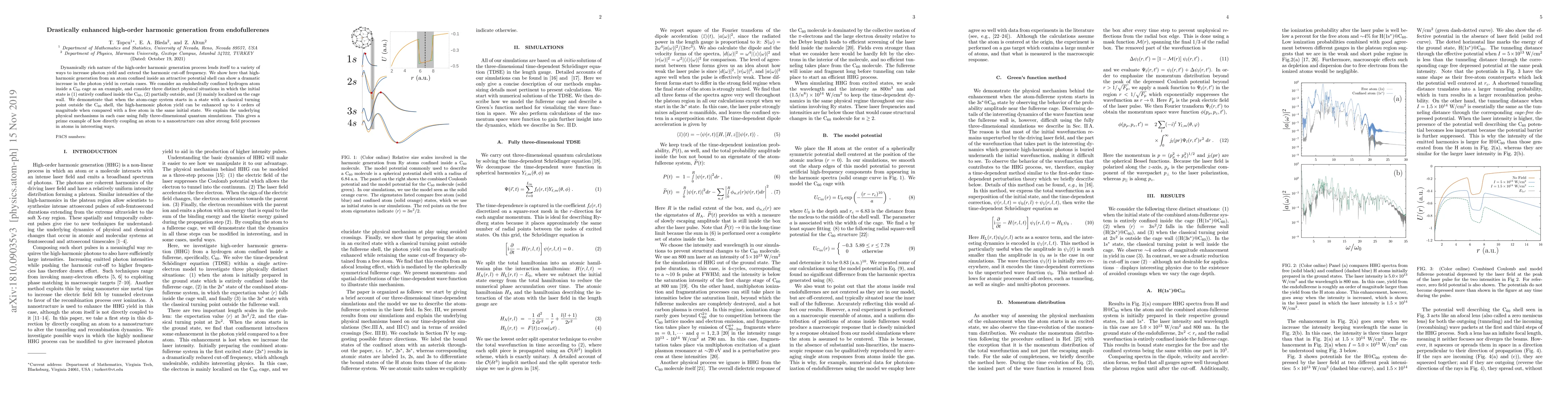 Dynamically rich nature of the high-order harmonic generation process lends itself to a variety of ways to increase photon yield and extend the harmonic cut-off frequency. We show here that high-harmonic generation from an atom confined inside an attractive potential shell can show a dramatic increase in the photon yield in certain cases. We consider an endohedrally confined hydrogen atom inside a C$_{60}$ cage as an example, and consider three distinct physical situations in which the initial state is (1) entirely confined inside the C$_{60}$, (2) partially outside, and (3) mainly localized on the cage wall. We demonstrate that when the atom-cage system starts in a state with a classical turning point outside the C$_{60}$ shell, the high-harmonic photon yield can be enhanced up to 4 orders of magnitude when compared with a free atom in the same initial state. We explain the underlying physical mechanisms in each case using fully three-dimensional quantum simulations. This gives a prime example of how directly coupling an atom to a nanostructure can alter strong field processes in atoms in interesting ways.