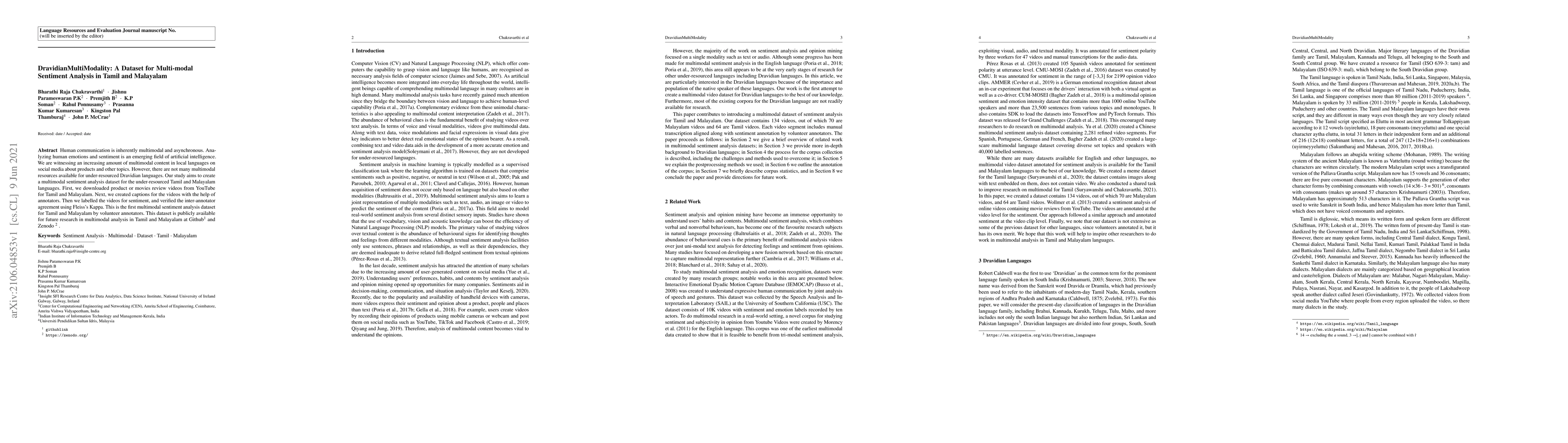 Human communication is inherently multimodal and asynchronous. Analyzing human emotions and sentiment is an emerging field of artificial intelligence. We are witnessing an increasing amount of multimodal content in local languages on social media about products and other topics. However, there are not many multimodal resources available for under-resourced Dravidian languages. Our study aims to create a multimodal sentiment analysis dataset for the under-resourced Tamil and Malayalam languages. First, we downloaded product or movies review videos from YouTube for Tamil and Malayalam. Next, we created captions for the videos with the help of annotators. Then we labelled the videos for sentiment, and verified the inter-annotator agreement using Fleiss's Kappa. This is the first multimodal sentiment analysis dataset for Tamil and Malayalam by volunteer annotators.