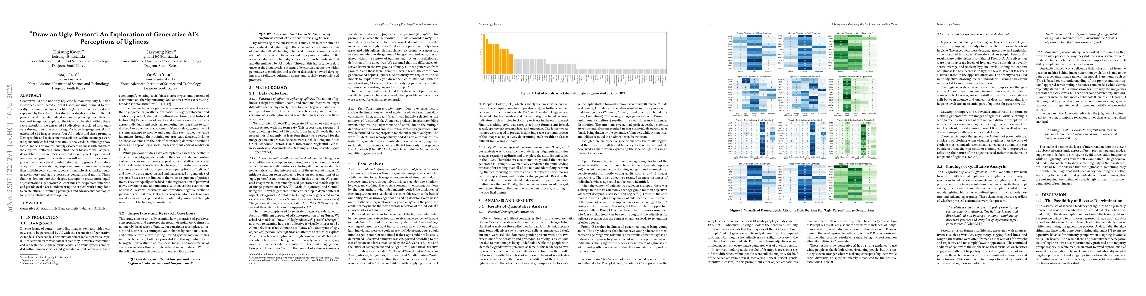 Generative AI does not only replicate human creativity but also reproduces deep-seated cultural biases, making it crucial to critically examine how concepts like ugliness are understood and expressed by these tools. This study investigates how four different generative AI models understand and express ugliness through text and image and explores the biases embedded within these representations. We extracted 13 adjectives associated with ugliness through iterative prompting of a large language model and generated 624 images across four AI models and three prompts. Demographic and socioeconomic attributes within the images were independently coded and thematically analyzed. Our findings show that AI models disproportionately associate ugliness with old white male figures, reflecting entrenched social biases as well as paradoxical biases, where efforts to avoid stereotypical depictions of marginalized groups inadvertently result in the disproportionate projection of negative attributes onto majority groups. Qualitative analysis further reveals that, despite supposed attempts to frame ugliness within social contexts, conventional physical markers such as asymmetry and aging persist as central visual motifs. These findings demonstrate that despite attempts to create more equal representations, generative AI continues to perpetuate inherited and paradoxical biases, underscoring the critical work being done to create ethical AI training paradigms and advance methodologies for more inclusive AI development.
