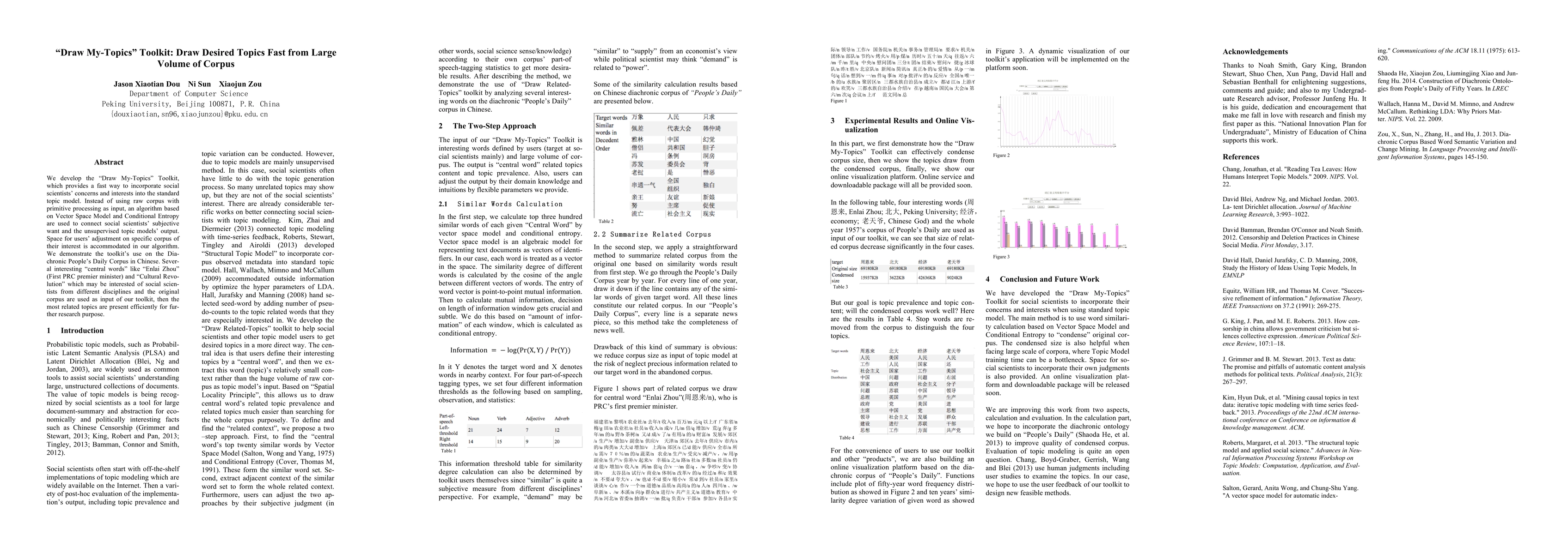 We develop the "Draw My Topics" toolkit, which provides a fast way to incorporate social scientists' interest into standard topic modelling. Instead of using raw corpus with primitive processing as input, an algorithm based on Vector Space Model and Conditional Entropy are used to connect social scientists' willingness and unsupervised topic models' output. Space for users' adjustment on specific corpus of their interest is also accommodated. We demonstrate the toolkit's use on the Diachronic People's Daily Corpus in Chinese.