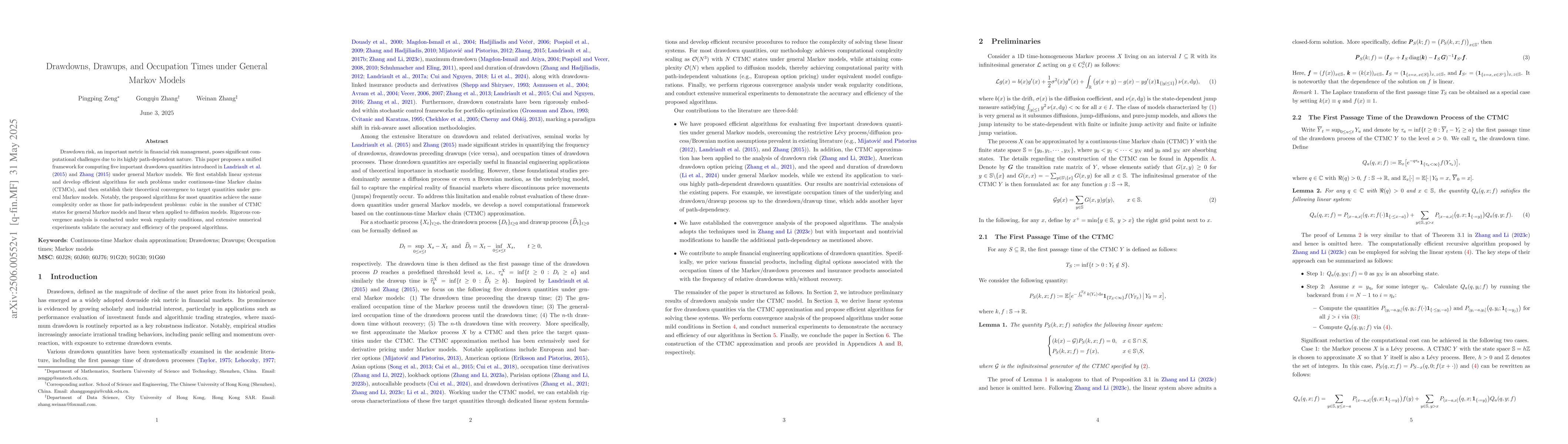 The paper establishes linear systems and develops efficient algorithms for computing drawdown quantities under continuous-time Markov chains (CTMCs), extending these to general Markov models with rigorous convergence analysis.