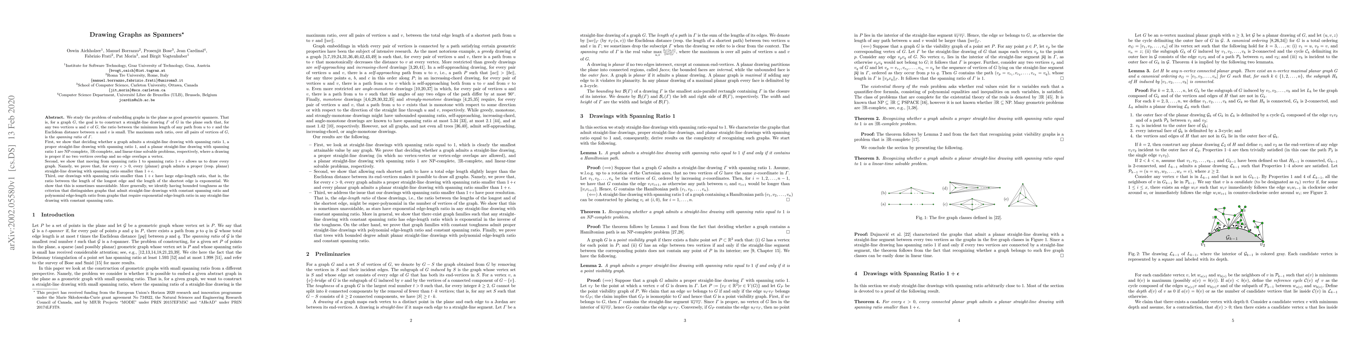 We study the problem of embedding graphs in the plane as good geometric spanners. That is, for a graph $G$, the goal is to construct a straight-line drawing $\Gamma$ of $G$ in the plane such that, for any two vertices $u$ and $v$ of $G$, the ratio between the minimum length of any path from $u$ to $v$ and the Euclidean distance between $u$ and $v$ is small. The maximum such ratio, over all pairs of vertices of $G$, is the spanning ratio of $\Gamma$. First, we show that deciding whether a graph admits a straight-line drawing with spanning ratio $1$, a proper straight-line drawing with spanning ratio $1$, and a planar straight-line drawing with spanning ratio $1$ are NP-complete, $\exists \mathbb R$-complete, and linear-time solvable problems, respectively, where a drawing is proper if no two vertices overlap and no edge overlaps a vertex. Second, we show that moving from spanning ratio $1$ to spanning ratio $1+\epsilon$ allows us to draw every graph. Namely, we prove that, for every $\epsilon>0$, every (planar) graph admits a proper (resp. planar) straight-line drawing with spanning ratio smaller than $1+\epsilon$. Third, our drawings with spanning ratio smaller than $1+\epsilon$ have large edge-length ratio, that is, the ratio between the length of the longest edge and the length of the shortest edge is exponential. We show that this is sometimes unavoidable. More generally, we identify having bounded toughness as the criterion that distinguishes graphs that admit straight-line drawings with constant spanning ratio and polynomial edge-length ratio from graphs that require exponential edge-length ratio in any straight-line drawing with constant spanning ratio.