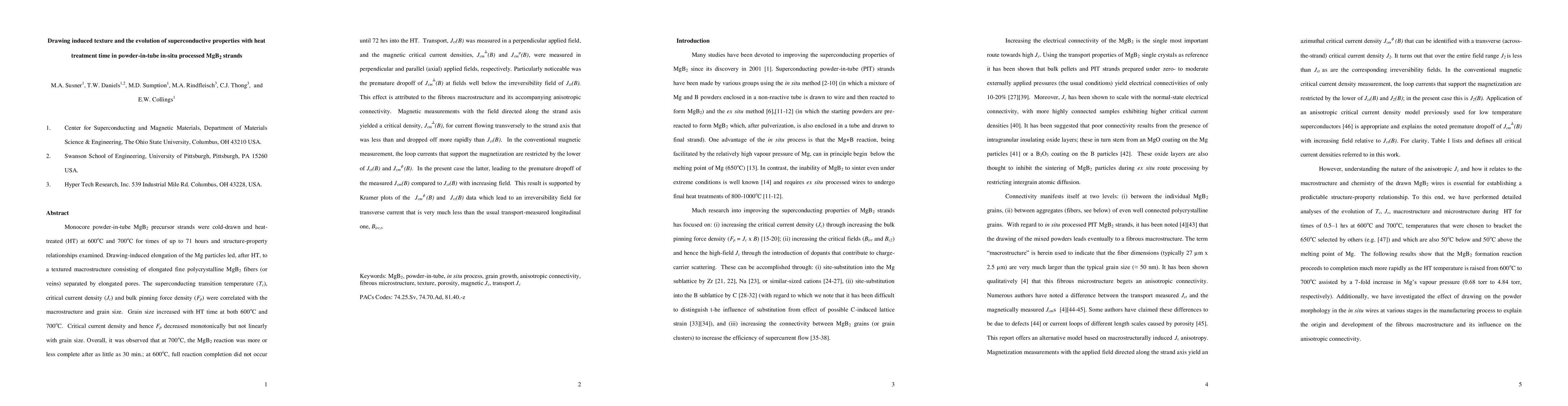 This study investigates the impact of heat treatment time on the superconducting properties of MgB2 strands processed via powder-in-tube method. Drawing and heat treatment led to textured microstructures, with superconducting properties decreasing with increasing grain size due to anisotropic connectivity effects.