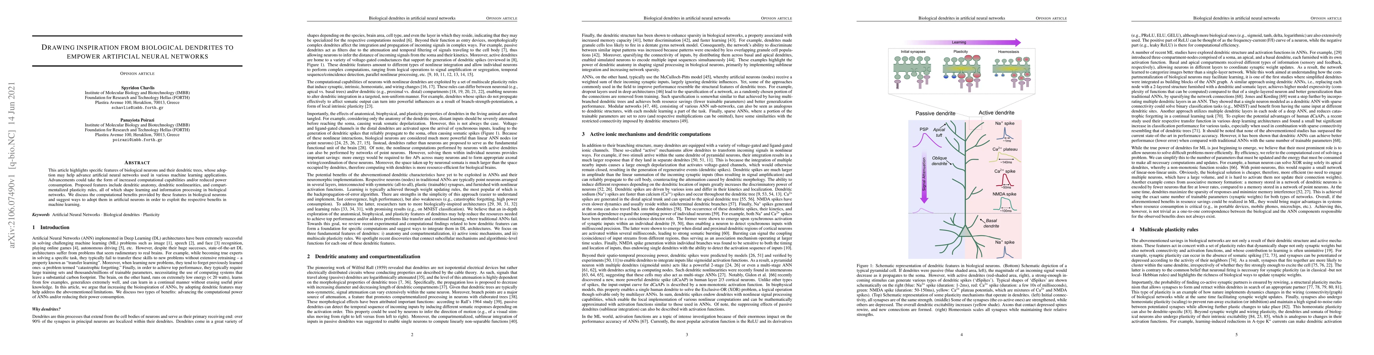 This paper explores how mimicking biological dendrites' features—such as dendritic anatomy, nonlinearities, and compartmentalized plasticity—can enhance artificial neural networks, potentially boosting computational power and reducing energy consumption for machine learning applications. The study proposes integrating these biological insights to improve artificial neural networks.