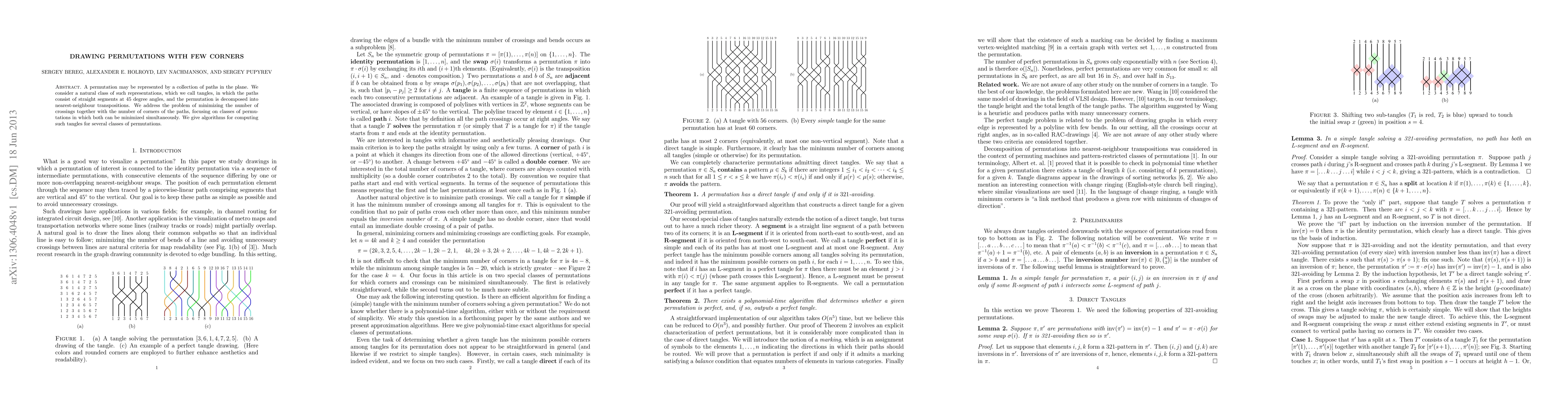 This paper studies permutations represented by tangles—paths with straight segments at 45 degrees—and aims to minimize both crossings and corners in these representations. Algorithms are developed to compute optimal tangles for various permutation classes.