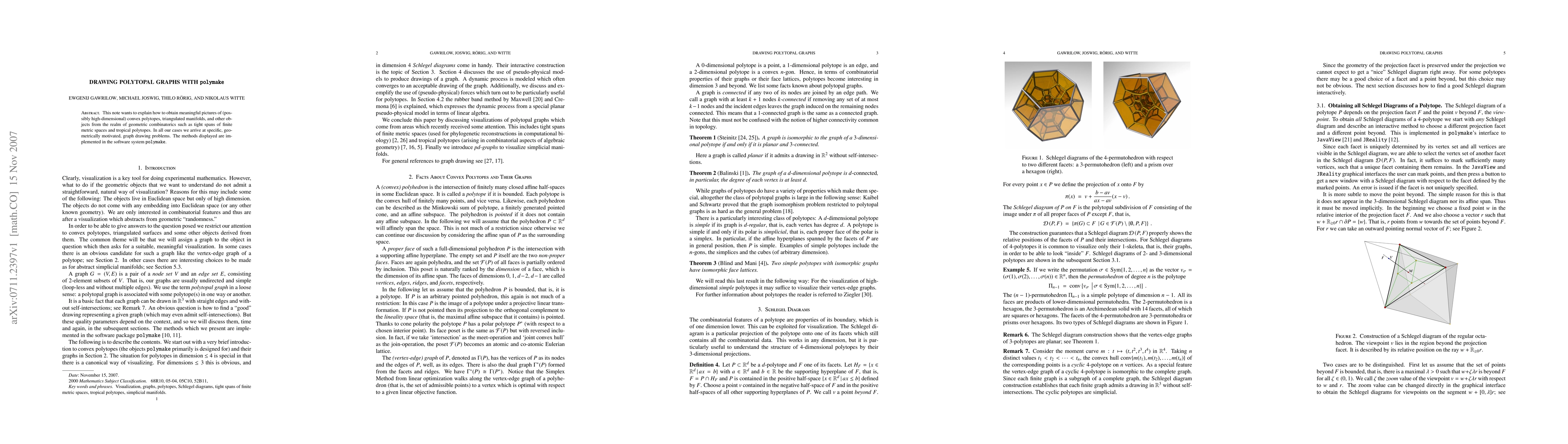 This paper outlines methods for visualizing high-dimensional convex polytopes and related geometric objects using the polymake software, focusing on geometrically motivated graph drawing techniques. The implementation facilitates the visualization of complex structures like triangulated manifolds and tropical polytopes.