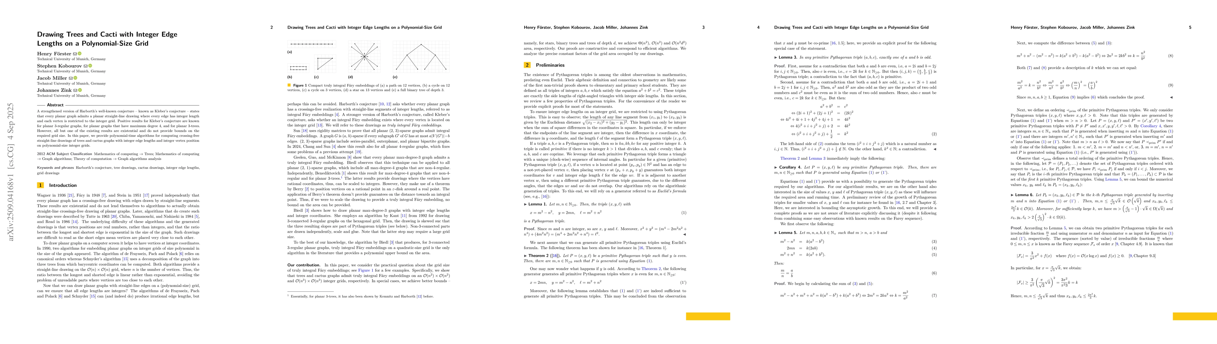 A strengthened version of Harborth's well-known conjecture -- known as Kleber's conjecture -- states that every planar graph admits a planar straight-line drawing where every edge has integer length and each vertex is restricted to the integer grid. Positive results for Kleber's conjecture are known for planar 3-regular graphs, for planar graphs that have maximum degree 4, and for planar 3-trees. However, all but one of the existing results are existential and do not provide bounds on the required grid size. In this paper, we provide polynomial-time algorithms for computing crossing-free straight-line drawings of trees and cactus graphs with integer edge lengths and integer vertex position on polynomial-size integer grids.