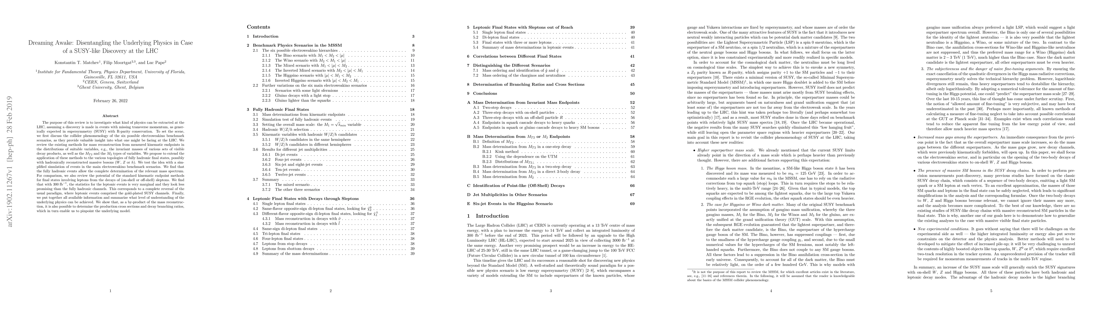 The purpose of this review is to investigate what kind of physics can be extracted at the LHC, assuming a discovery is made in events with missing transverse momentum, as generically expected in supersymmetry (SUSY) with R-parity conservation. To set the scene, we first discuss the collider phenomenology of the six possible electroweakino benchmark scenarios, as they provide valuable insight into what one might be facing at the LHC. We review the existing methods for mass reconstruction from measured kinematic endpoints in the distributions of suitable variables, e.g., the invariant masses of various sets of visible decay products, as well as the $M_{T2}$ and the $M_2$ types of variables. We propose to extend the application of these methods to the various topologies of fully hadronic final states, possibly with hadronically reconstructed massive bosons (W, Z or h). We test the idea with a simplified simulation of events in the main electroweakino benchmark scenarios. We find that the fully hadronic events allow the complete determination of the relevant mass spectrum. For comparison, we also review the potential of the standard kinematic endpoint methods for final states involving leptons from the decays of (on-shell or off-shell) sleptons. We find that with 300 $fb^{-1}$, the statistics for the leptonic events is very marginal and they look less promising than the fully hadronic channels. This corresponds to a complete reversal of the usual paradigm, where leptonic events comprised the gold-plated SUSY channels. Finally, we put together all available information and summarize what level of understanding of the underlying physics can be achieved. We show that, as a by-product of the mass reconstruction, it is also possible to determine the production cross sections and decay branching ratios, which in turn enable us to pinpoint the underlying model.