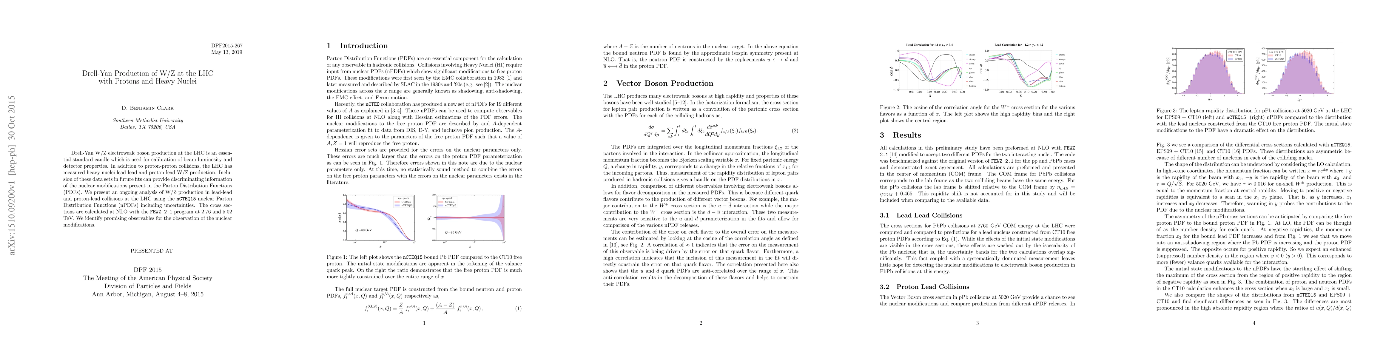 This paper investigates Drell-Yan W/Z boson production in lead-lead and proton-lead collisions at the LHC, using nCTEQ15 nuclear Parton Distribution Functions (nPDFs) to analyze cross sections at NLO. The study aims to identify promising observables for discerning nuclear modifications in Parton Distribution Functions.