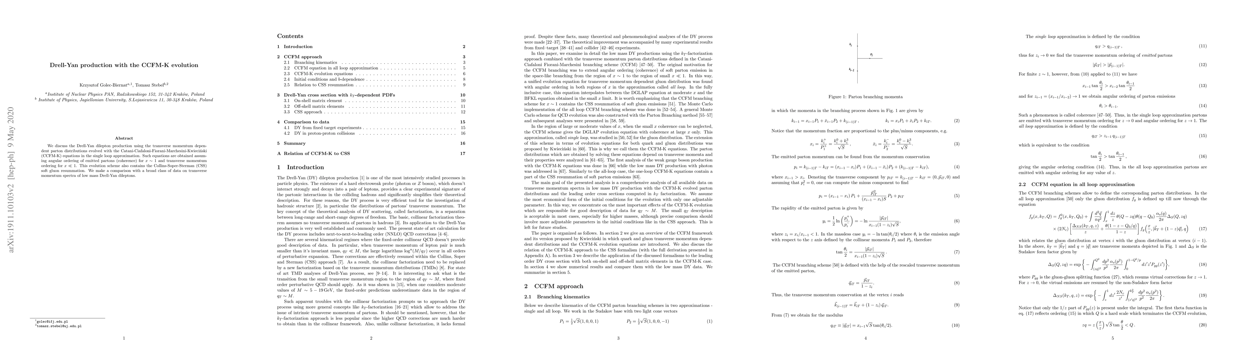 We discuss the Drell-Yan dilepton production using the transverse momentum dependent parton distributions evolved with the Catani-Ciafaloni-Fiorani-Marchesini-Kwieci\'nski (CCFM-K) equations in the single loop approximation. Such equations are obtained assuming angular ordering of emitted partons (coherence) for $x\sim 1$ and transverse momentum ordering for $x \ll 1$. This evolution scheme also contains the Collins-Soper-Sterman (CSS) soft gluon resummation. We make a comparison with a broad class of data on transverse momentum spectra of low mass Drell-Yan dileptons.
