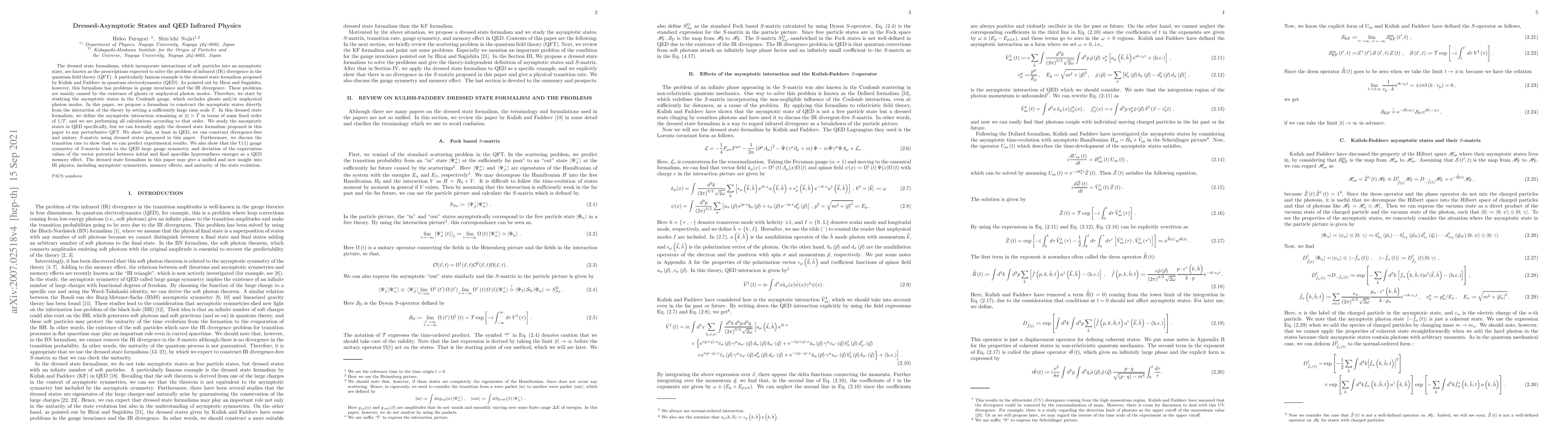 The dressed state formalisms, which incorporate interactions of soft particles into an asymptotic state, are known as the prescriptions expected to solve the problem of infrared (IR) divergence in the quantum field theory (QFT). A particularly famous example is the dressed state formalism proposed by Kulish and Faddeev in quantum electrodynamics (QED). As pointed out by Hirai and Sugishita, however, this formalism has problems in gauge invariance and the IR divergence. These problems are mainly caused by the existence of ghosts or unphysical photon modes. Therefore, we start by studying the asymptotic states in the Coulomb gauge, which excludes ghosts and/or unphysical photon modes. In this paper, we propose a formalism to construct the asymptotic states directly from the interaction of the theory by setting a sufficiently large time scale $T$. In this dressed state formalism, we define the asymptotic interaction remaining at $|t|>T$ in terms of some fixed order of $1/T$, and we are performing all calculations according to that order. We study the asymptotic states in QED specifically, but we can formally apply the dressed state formalism proposed in this paper to any perturbative QFT. We show that, at least in QED, we can construct divergence-free and unitary $S$-matrix using dressed states proposed in this paper. Furthermore, we discuss the transition rate to show that we can predict experimental results. We also show that the $\mathrm{U}(1)$ gauge symmetry of $S$-matrix leads to the QED large gauge symmetry, and deviation of the expectation values of the vector potential between initial and final spacelike hypersurfaces emerges as a QED memory effect. The dressed state formalism in this paper may give a unified and new insight into IR physics, including asymptotic symmetries, memory effects, and unitarity of the state evolution.