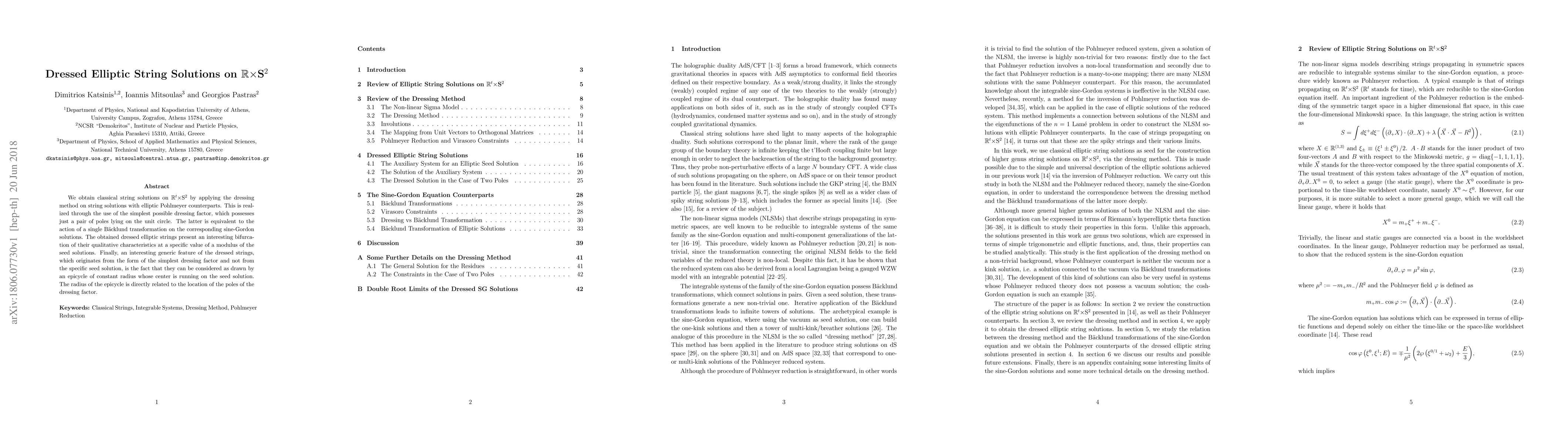 We obtain classical string solutions on RxS^2 by applying the dressing method on string solutions with elliptic Pohlmeyer counterparts. This is realized through the use of the simplest possible dressing factor, which possesses just a pair of poles lying on the unit circle. The latter is equivalent to the action of a single Backlund transformation on the corresponding sine-Gordon solutions. The obtained dressed elliptic strings present an interesting bifurcation of their qualitative characteristics at a specific value of a modulus of the seed solutions. Finally, an interesting generic feature of the dressed strings, which originates from the form of the simplest dressing factor and not from the specific seed solution, is the fact that they can be considered as drawn by an epicycle of constant radius whose center is running on the seed solution. The radius of the epicycle is directly related to the location of the poles of the dressing factor.