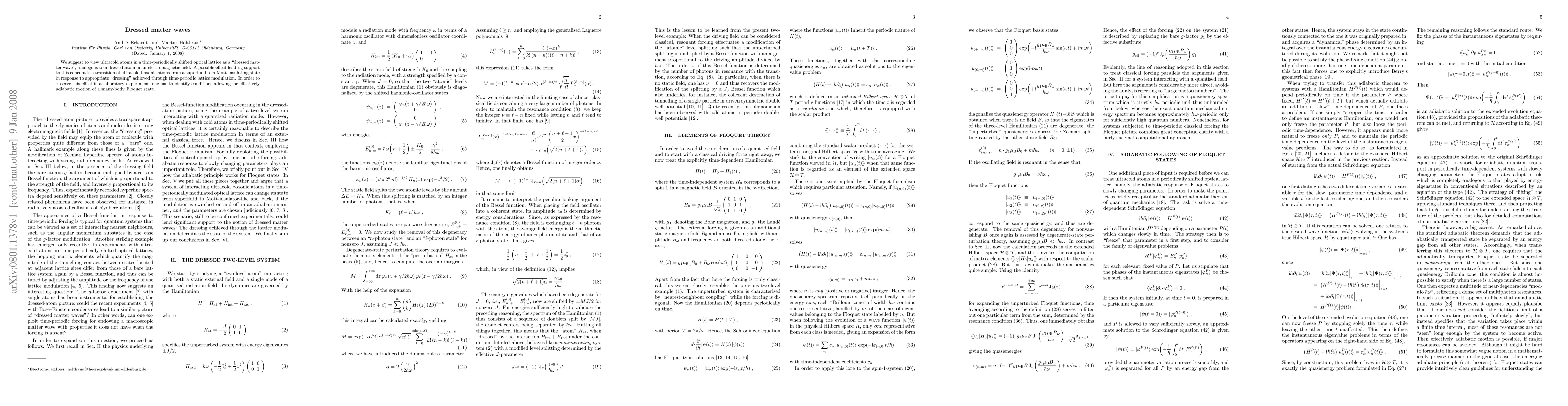 This paper proposes viewing ultracold atoms in a periodically modulated optical lattice as "dressed matter waves," akin to dressed atoms in electromagnetic fields. It suggests that such modulation can induce a transition from superfluid to Mott-insulating state in bosonic atoms, requiring identification of conditions for adiabatic motion of many-body Floquet states for experimental observation.