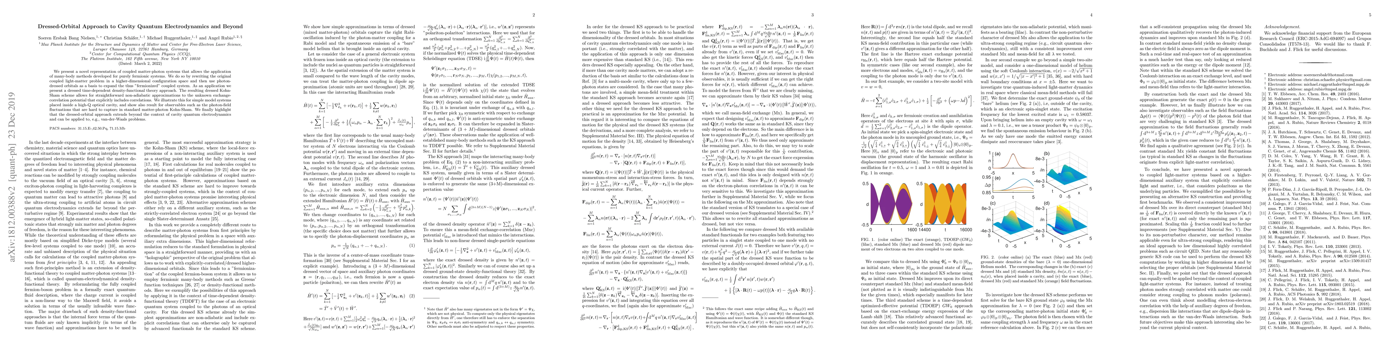 The paper introduces a new method to represent coupled matter-photon systems using dressed orbitals, enabling the application of fermionic many-body methods. This 'dressed time-dependent density-functional theory' approach allows for straightforward non-adiabatic approximations of the exchange-correlation potential, explicitly including correlations. The method is demonstrated for simple model systems in high-Q optical cavities and has potential applications beyond cavity quantum electrodynamics, such as in van-der-Waals problems.