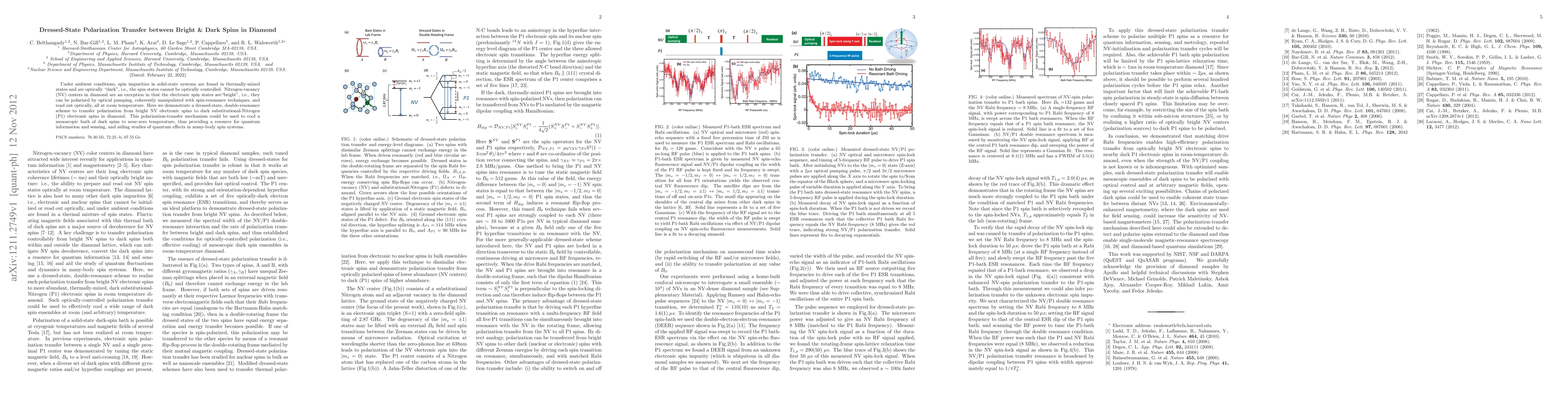 This paper demonstrates a method for transferring polarization from optically controllable "bright" NV centers in diamond to "dark" substitutional-Nitrogen (P1) spins using a dressed-state, double-resonance technique. This polarization-transfer mechanism could enable cooling of dark spins to near-zero temperature, benefiting quantum information and sensing applications.