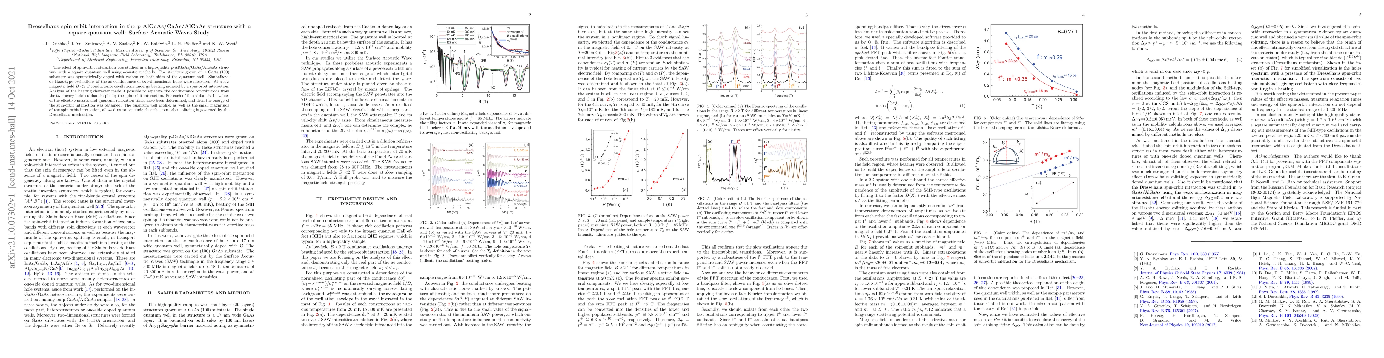 This study investigates the Dresselhaus spin-orbit interaction in a $p$-AlGaAs/GaAs/AlGaAs quantum well using surface acoustic waves, revealing spin-orbit-induced beating in conductance oscillations. The analysis determined effective masses, relaxation times, and confirmed the Dresselhaus mechanism governs the spin-orbit splitting.