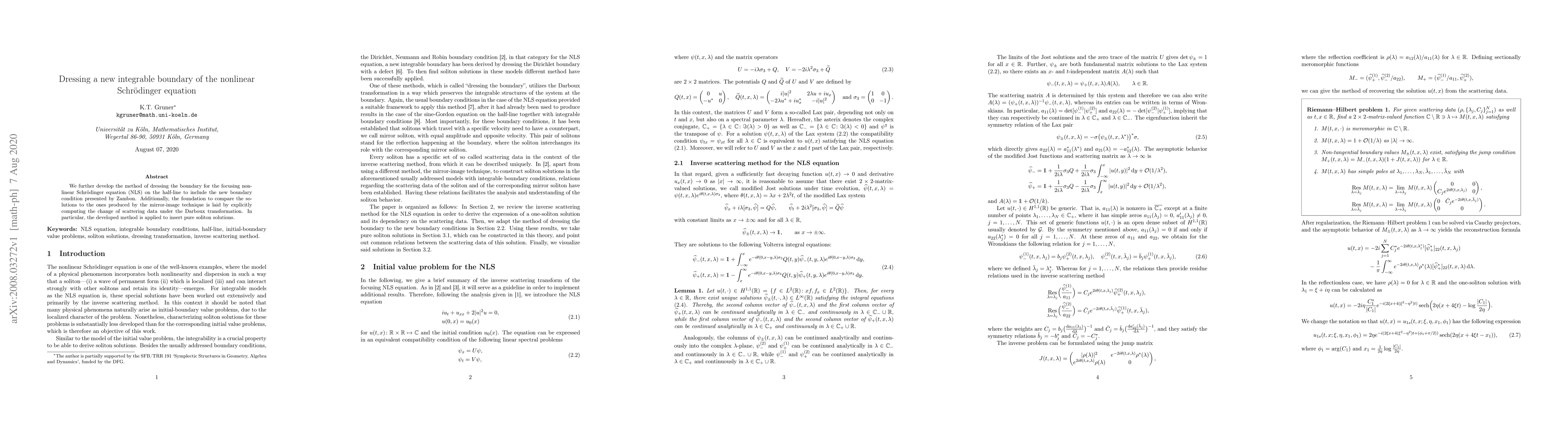We further develop the method of dressing the boundary for the focusing nonlinear Schr\"odinger equation (NLS) on the half-line to include the new boundary condition presented by Zambon. Additionally, the foundation to compare the solutions to the ones produced by the mirror-image technique is laid by explicitly computing the change of scattering data under the Darboux transformation. In particular, the developed method is applied to insert pure soliton solutions.