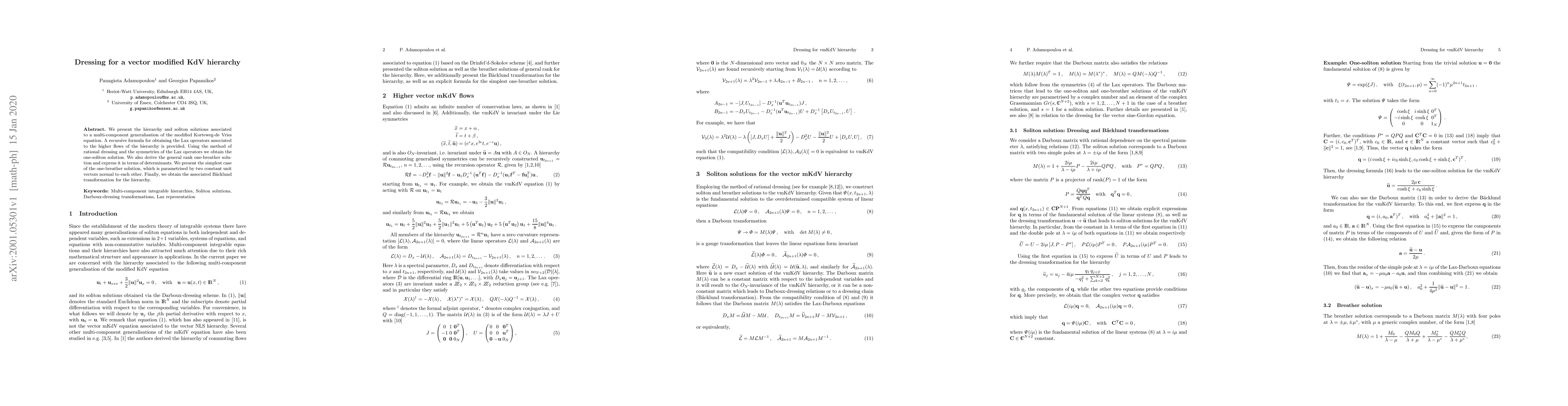 This research contributes to the understanding of integrable systems by extending the mKdV equation into vectorial form and providing methods for generating solutions within this new hierarchy.