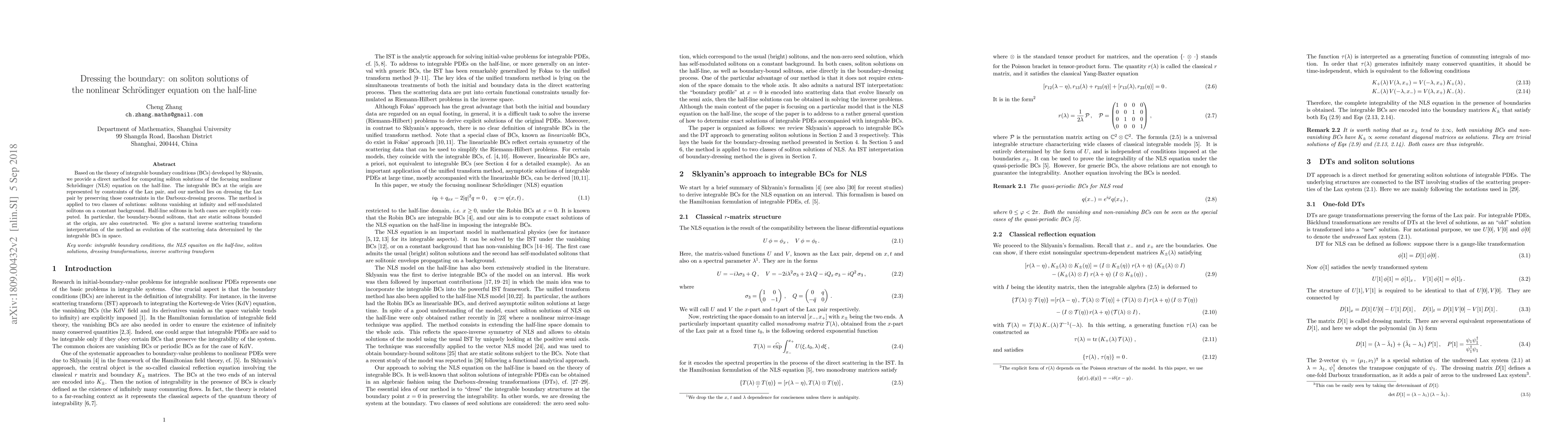 This paper presents a novel method for computing soliton solutions of the focusing nonlinear Schrödinger equation on the half-line using integrable boundary conditions. The method involves dressing the Lax pair while preserving boundary constraints, leading to explicit computations for solitons vanishing at infinity and self-modulated solitons on a constant background, including boundary-bound solitons.