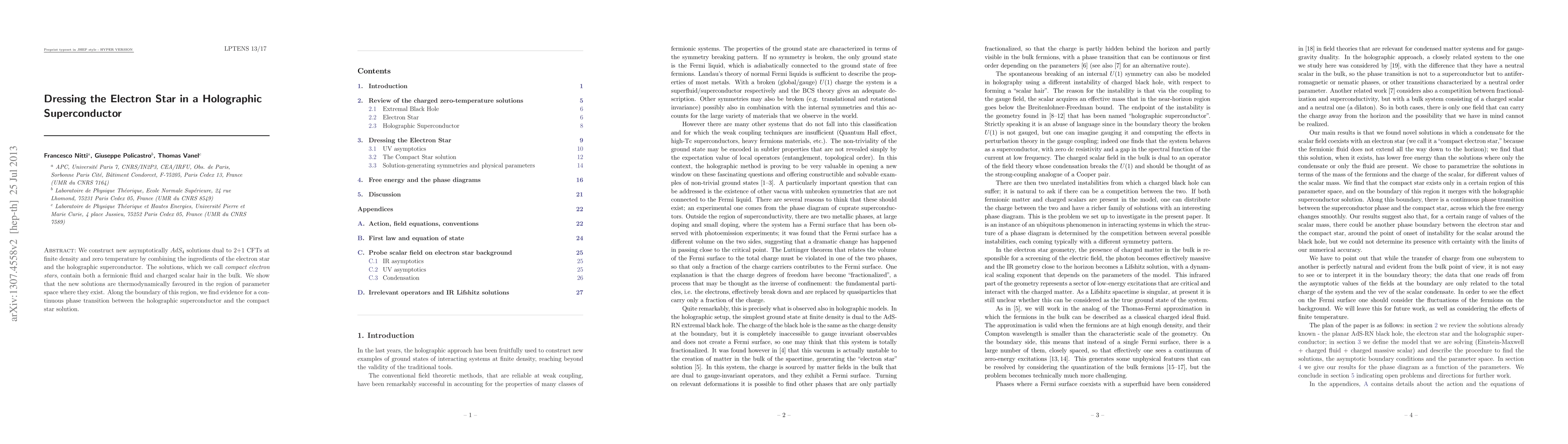 We construct new asymptotically AdS_4 solutions dual to 2+1 CFTs at finite density and zero temperature by combining the ingredients of the electron star and the holographic superconductor. The solutions, which we call "compact electron stars", contain both a fermionic fluid and charged scalar hair in the bulk. We show that the new solutions are thermodynamically favoured in the region of parameter space where they exist. Along the boundary of this region, we find evidence for a continuous phase transition between the holographic superconductor and the compact star solution.