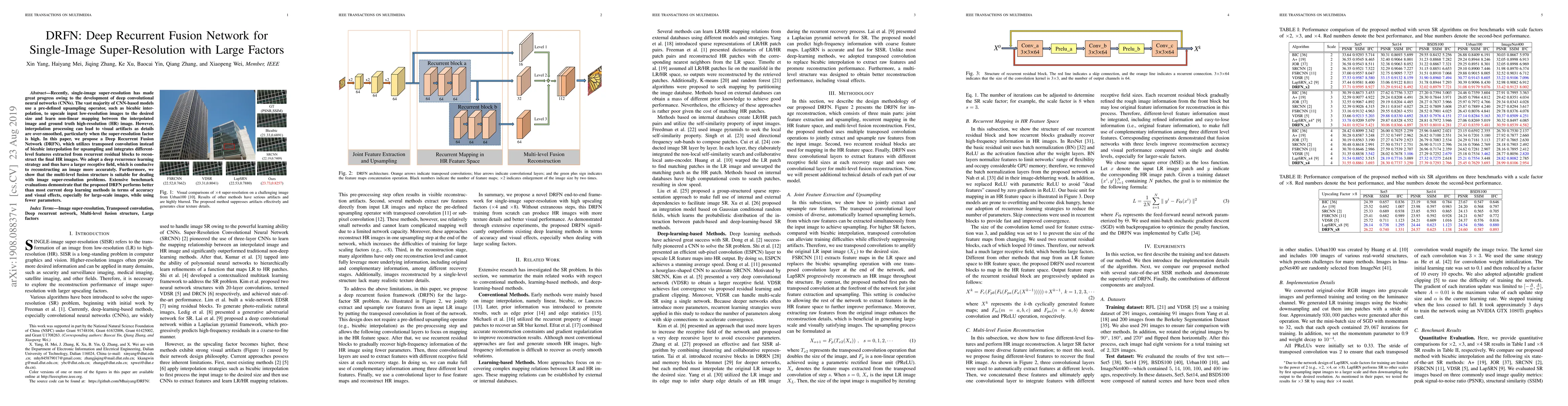 The paper proposes a Deep Recurrent Fusion Network (DRFN) for single-image super-resolution, utilizing transposed convolution for upsampling and recurrent residual blocks for feature fusion, which outperforms existing CNN-based methods, especially for high-scale image upscaling. Extensive evaluations show DRFN achieves superior accuracy and visual quality with fewer parameters.