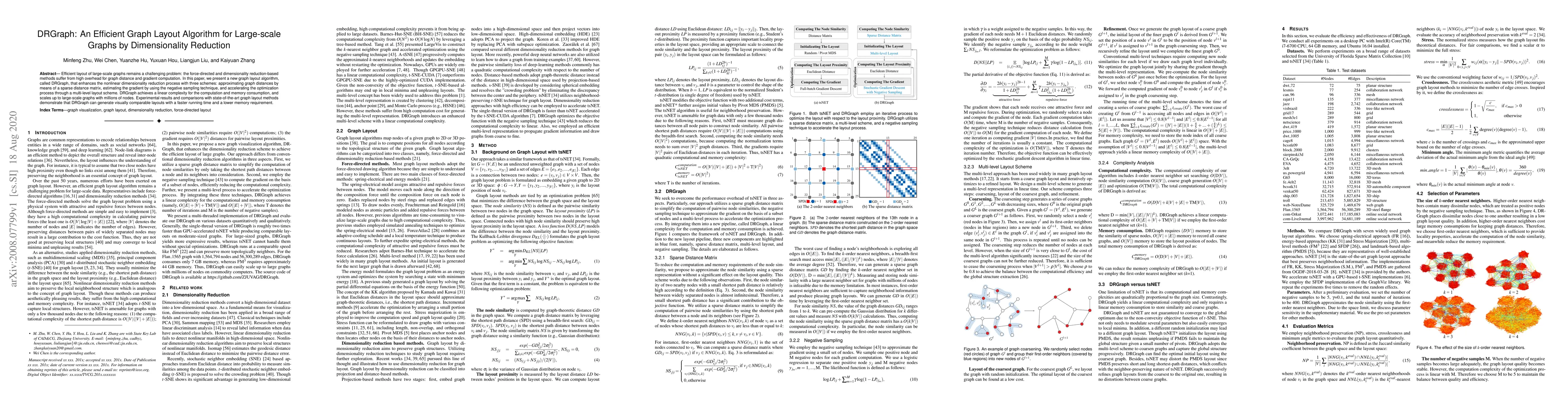 A new graph layout algorithm called DRGraph reduces computational overhead by approximating distances and estimating gradients, allowing for efficient layout of large-scale graphs.