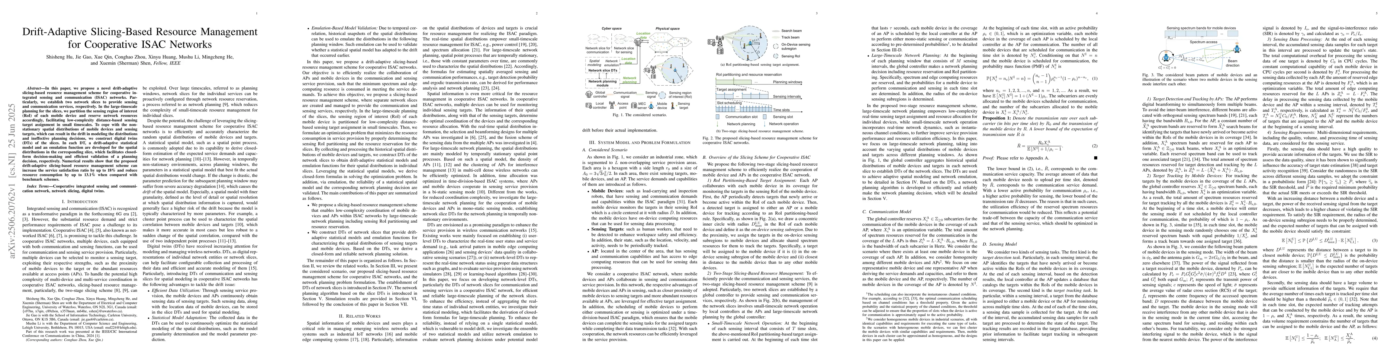 In this paper, we propose a novel drift-adaptive slicing-based resource management scheme for cooperative integrated sensing and communication (ISAC) networks. Particularly, we establish two network slices to provide sensing and communication services, respectively. In the large-timescale planning for the slices, we partition the sensing region of interest (RoI) of each mobile device and reserve network resources accordingly, facilitating low-complexity distance-based sensing target assignment in small timescales. To cope with the non-stationary spatial distributions of mobile devices and sensing targets, which can result in the drift in modeling the distributions and ineffective planning decisions, we construct digital twins (DTs) of the slices. In each DT, a drift-adaptive statistical model and an emulation function are developed for the spatial distributions in the corresponding slice, which facilitates closed-form decision-making and efficient validation of a planning decision, respectively. Numerical results show that the proposed drift-adaptive slicing-based resource management scheme can increase the service satisfaction ratio by up to 18% and reduce resource consumption by up to 13.1% when compared with benchmark schemes.