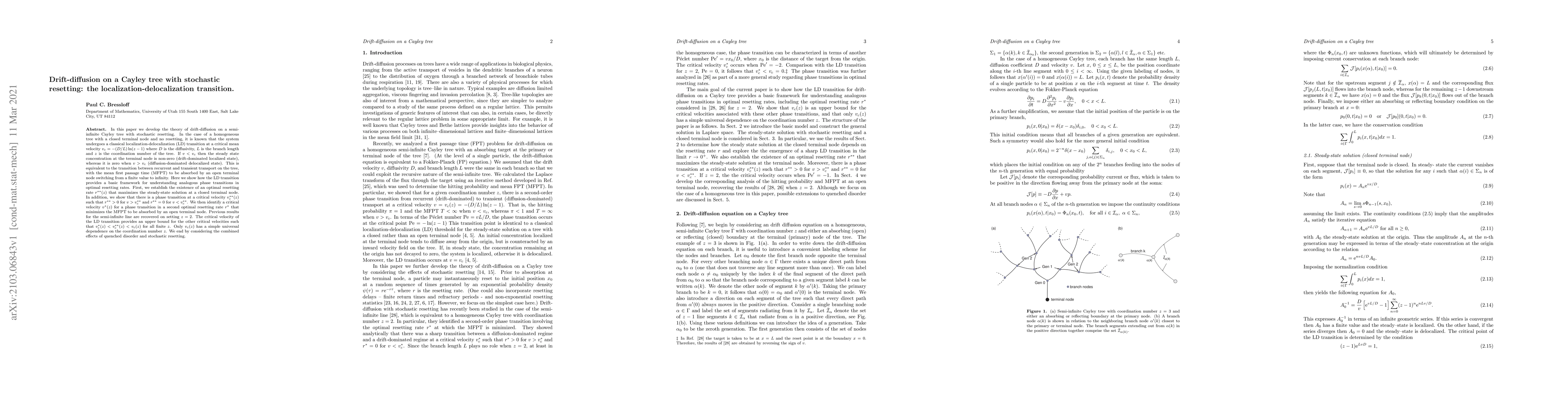 Cayley tree with stochastic resetting. In the case of a homogeneous tree with a