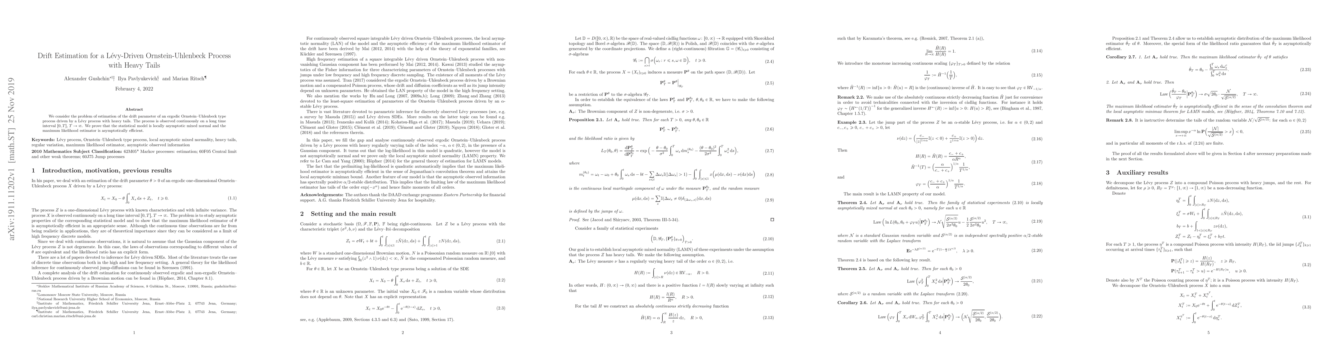 This paper addresses the estimation of the drift parameter in an ergodic Ornstein-Uhlenbeck process driven by a heavy-tailed Lévy process. The authors prove that the statistical model is locally asymptotic mixed normal, and the maximum likelihood estimator is asymptotically efficient.