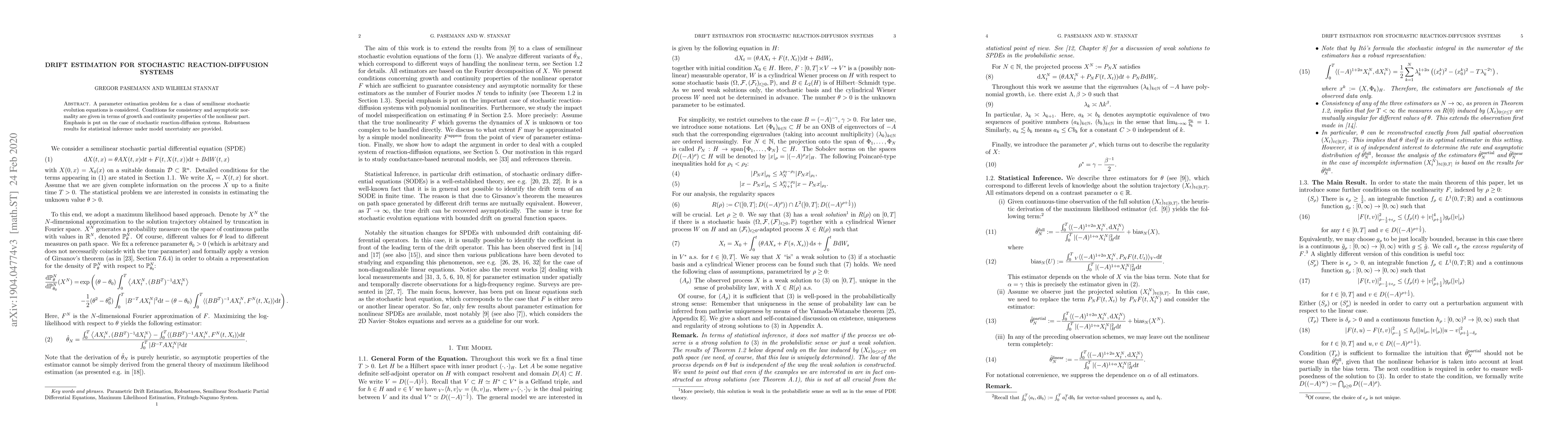This paper addresses parameter estimation for stochastic reaction-diffusion systems, establishing conditions for consistency and asymptotic normality based on the properties of the nonlinear component. It also provides robustness results for statistical inference amidst model uncertainty.