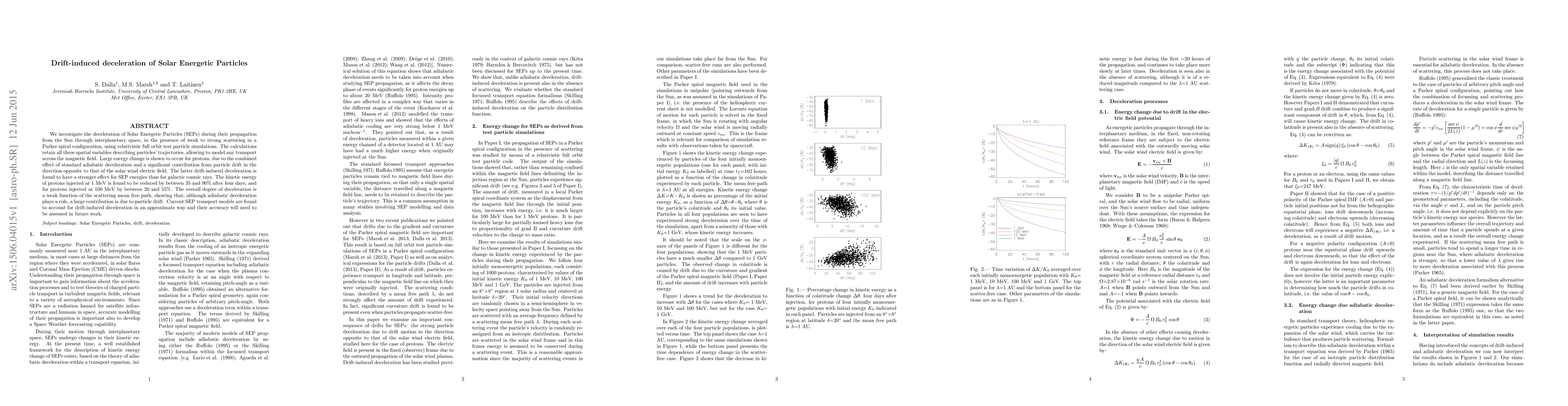 This study uses relativistic simulations to explore the deceleration of Solar Energetic Particles (SEPs) in interplanetary space, revealing significant drift-induced deceleration opposite to the solar wind electric field. Protons experience substantial energy loss, with 1 MeV protons losing 35-90% and 100 MeV protons losing 20-55% of their energy over four days.