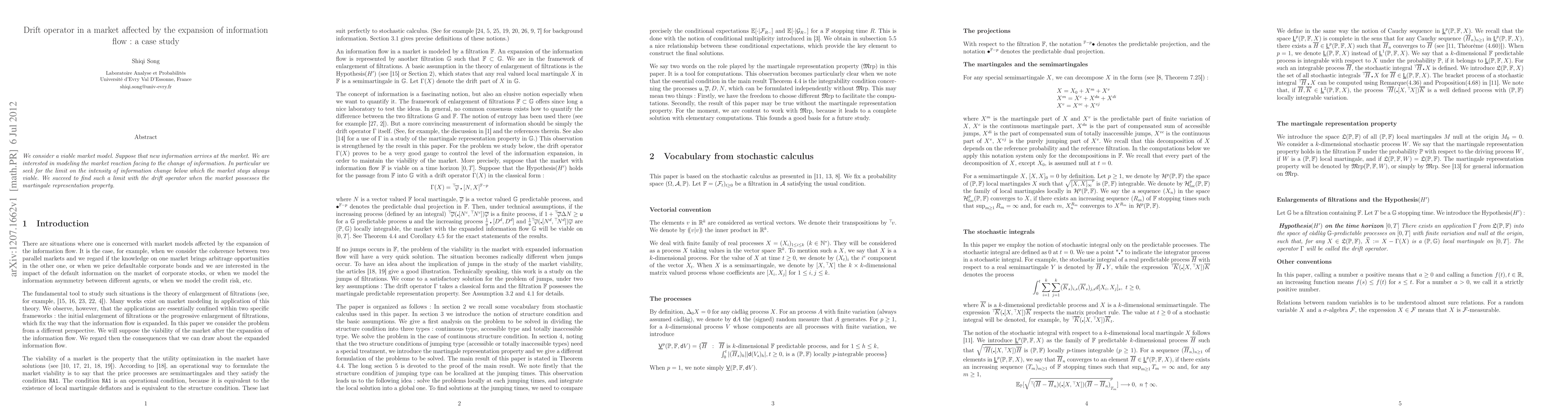 We consider a viable market model. Suppose that new information arrives at the market. We are interested in modeling the market reaction facing to the change of information. In particular we seek for the limit on the intensity of information change below which the market stays always viable. We succeed to find such a limit with the drift operator when the market possesses the martingale representation property.