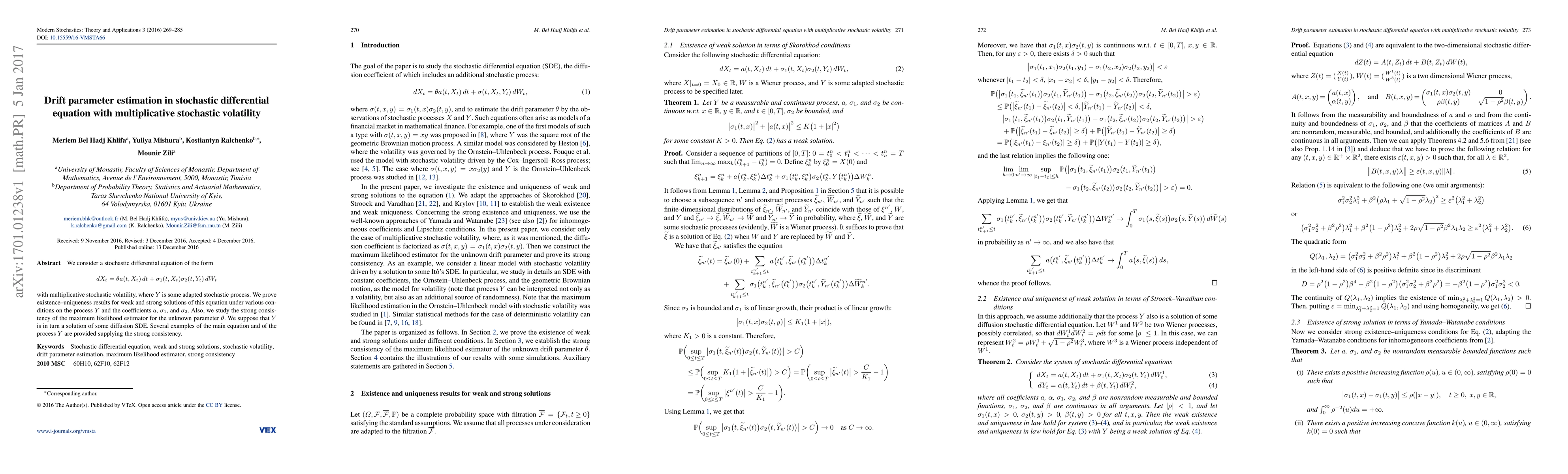 Researchers developed a method for estimating parameters in a stochastic differential equation with multiplicative stochastic volatility, proving existence and uniqueness of solutions and studying the consistency of maximum likelihood estimators.