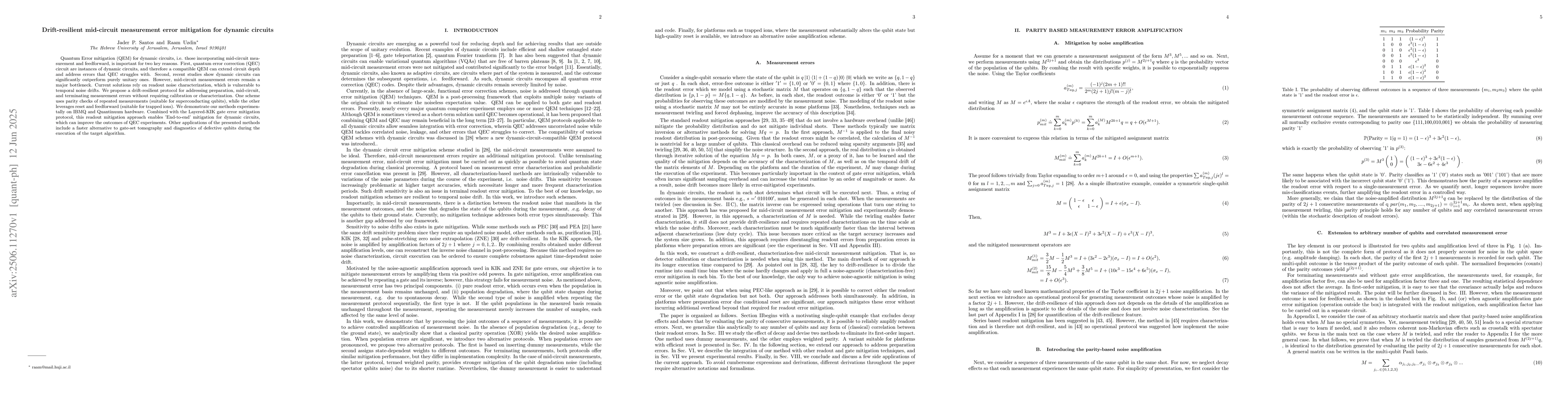 The research introduces a drift-resilient protocol to mitigate mid-circuit measurement errors in dynamic quantum circuits, crucial for quantum error correction and enhancing circuit performance. This method, demonstrated on IBMQ and Quantinuum hardware, doesn't require calibration or characterization, offering 'end-to-end' mitigation and applications beyond error correction, like faster gate-set tomography and qubit diagnostics during algorithm execution.
