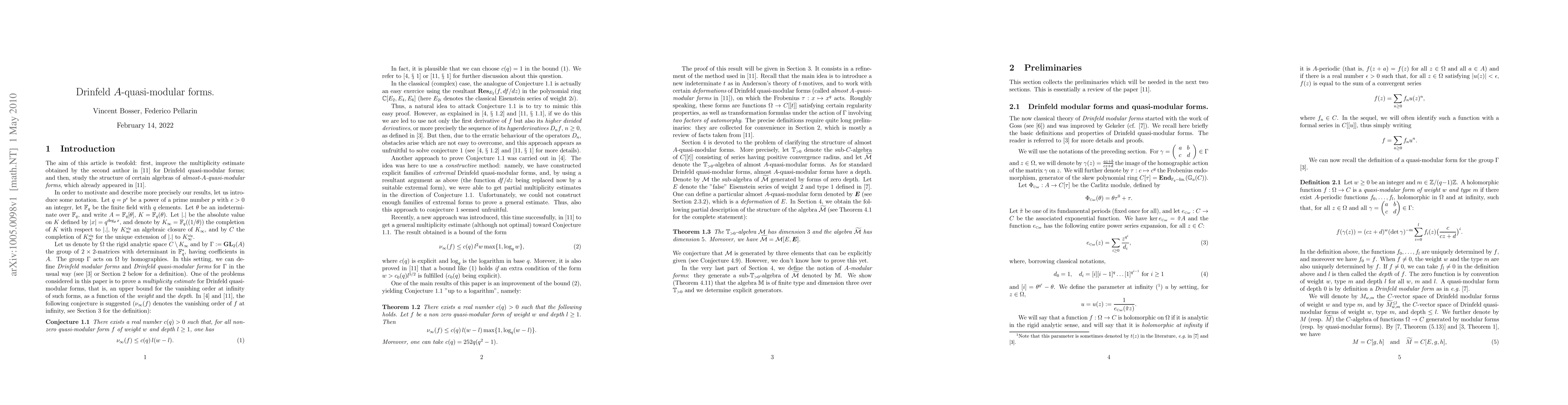 Summary: This paper refines the multiplicity estimate for Drinfeld quasi-modular forms and investigates the structure of algebras associated with "almost-$A$-quasi-modular forms." The study contributes to the understanding of quasi-modular forms in the context of Drinfeld's framework.