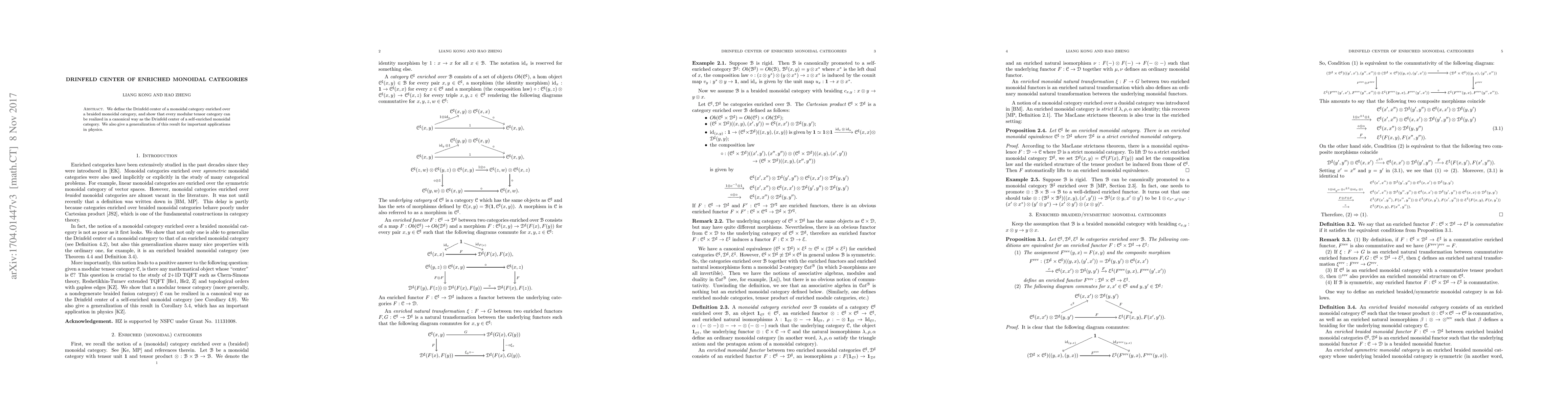 Summary: This paper defines the Drinfeld center for monoidal categories enriched over braided monoidal categories and demonstrates that modular tensor categories can be realized as the Drinfeld center of self-enriched monoidal categories, with implications for physical applications.
